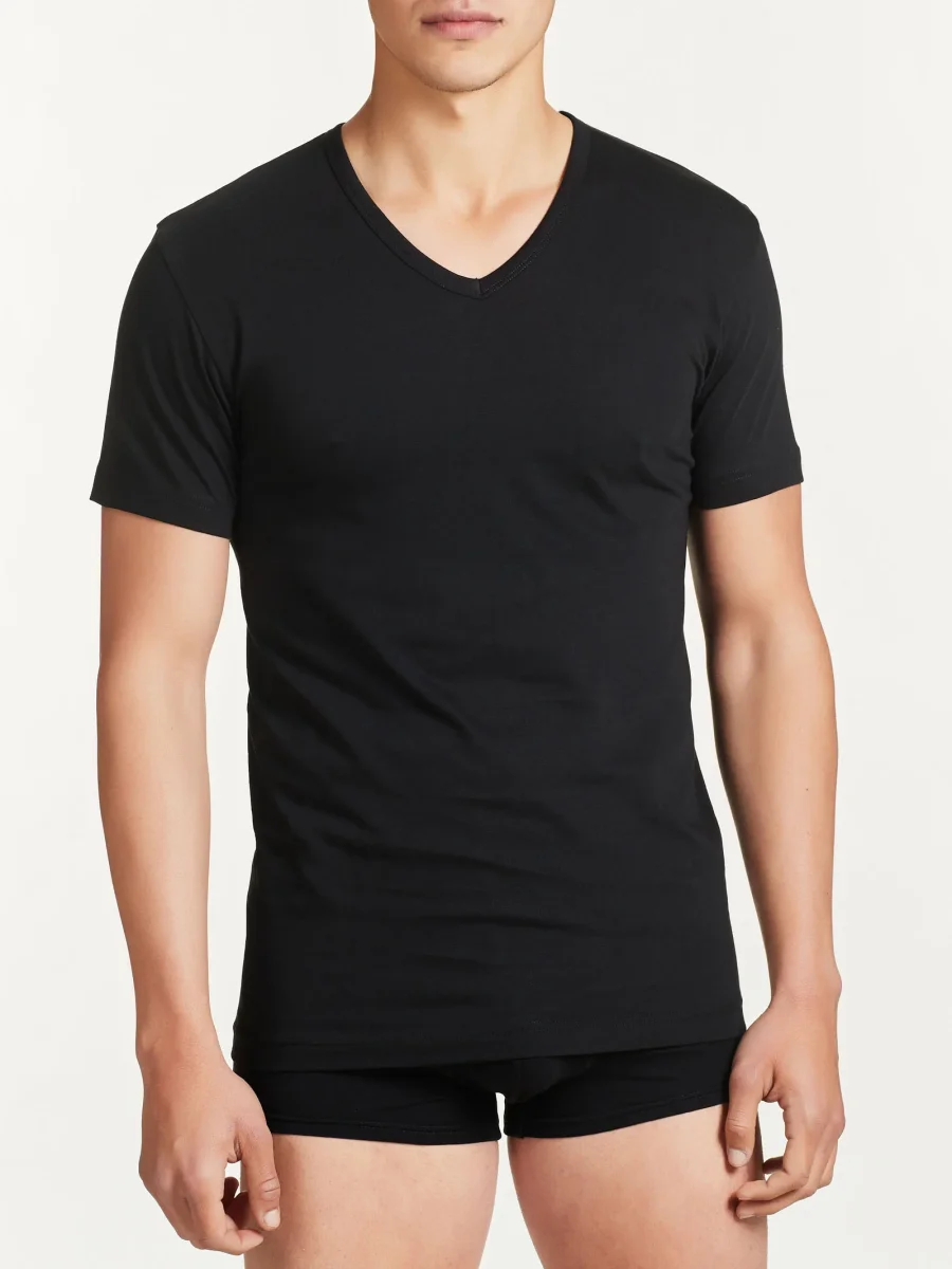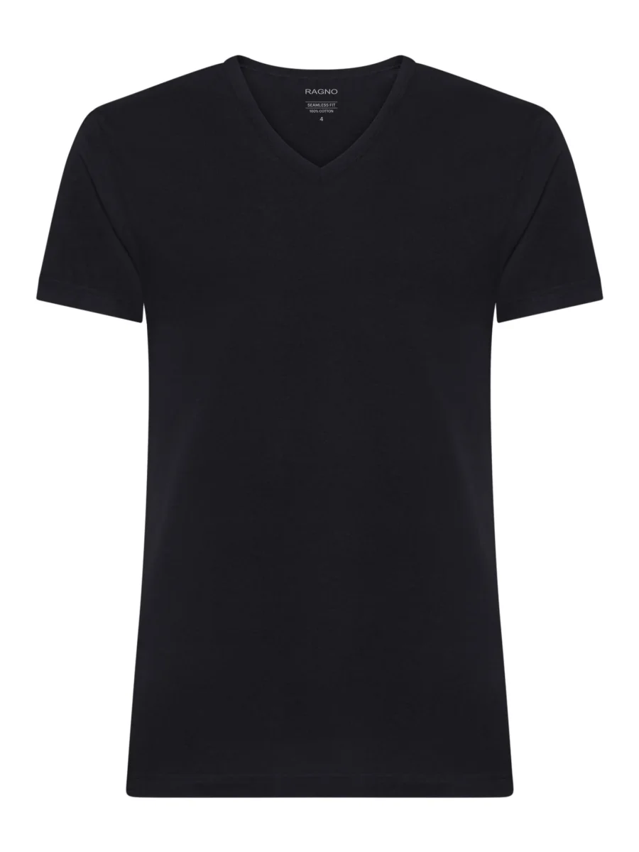 Maglietta con scollo a V e manica corta in jersey di puro cotone con il seamless fit senza cuciture.
