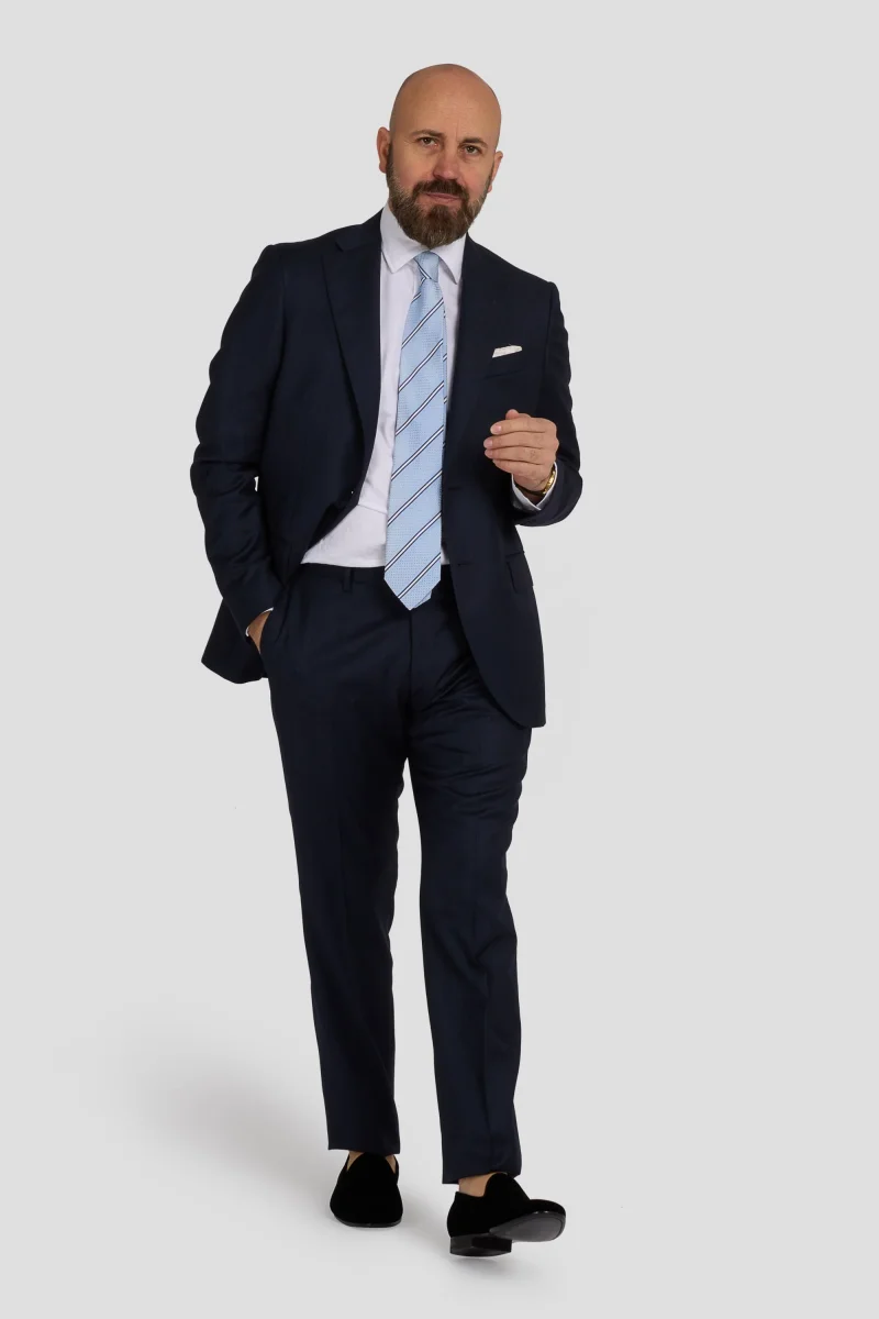 Descrizione: abito realizzato in pura lana ,completamente foderato,è un ottima soluzione per la primavera estate . questo abito blu è ideale per essere portato al lavoro grazie al suo colore senza tempo. si presta benissimo per occasioni speciali come matrimonio eventi di gala,grazie alla sua costruzione e ai suoi dettagli sartoriali .giacca chiusura due bottone doppio spacco laterale sul retro. Made in Italy.