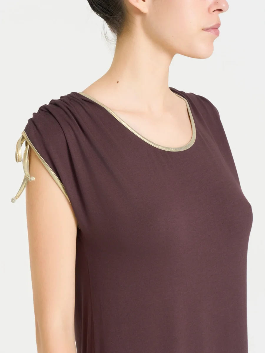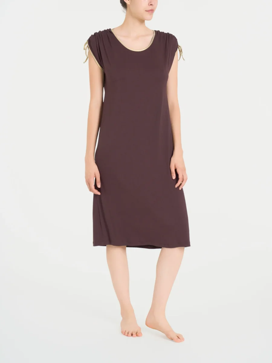 Abito girocollo da donna dritto con manica kimono con coulisse.