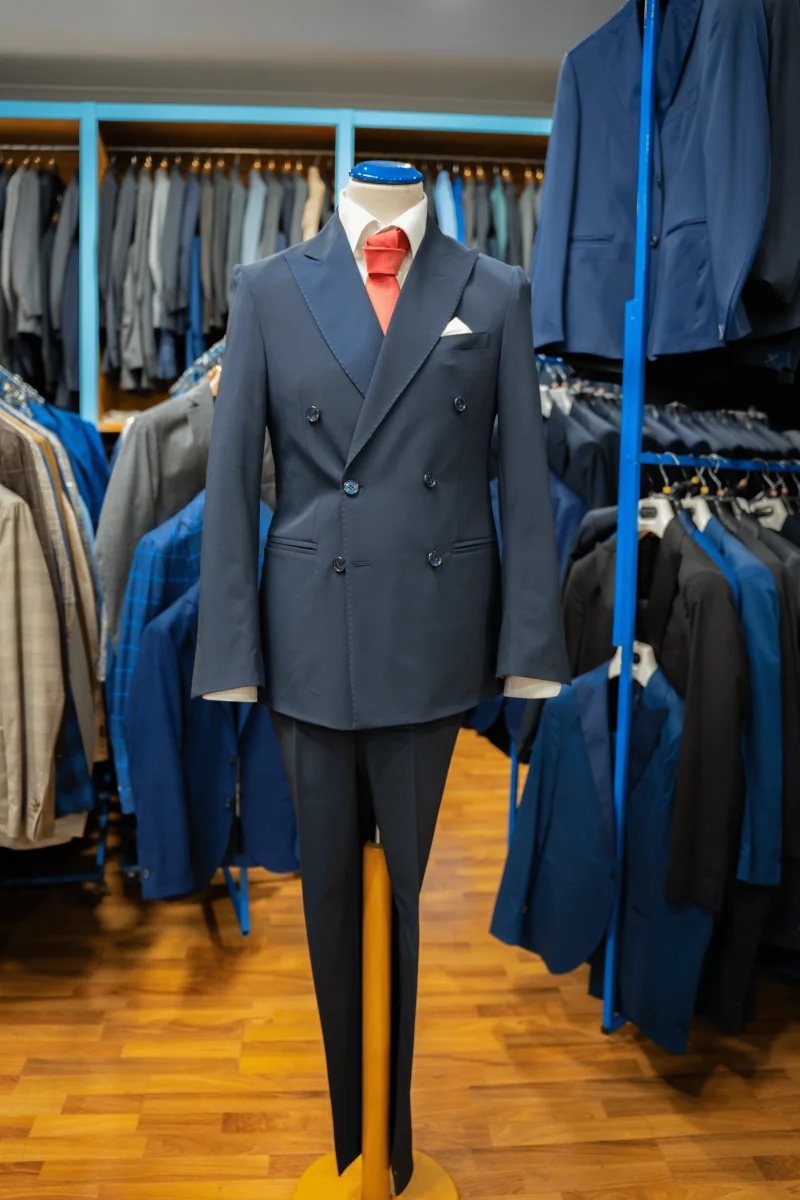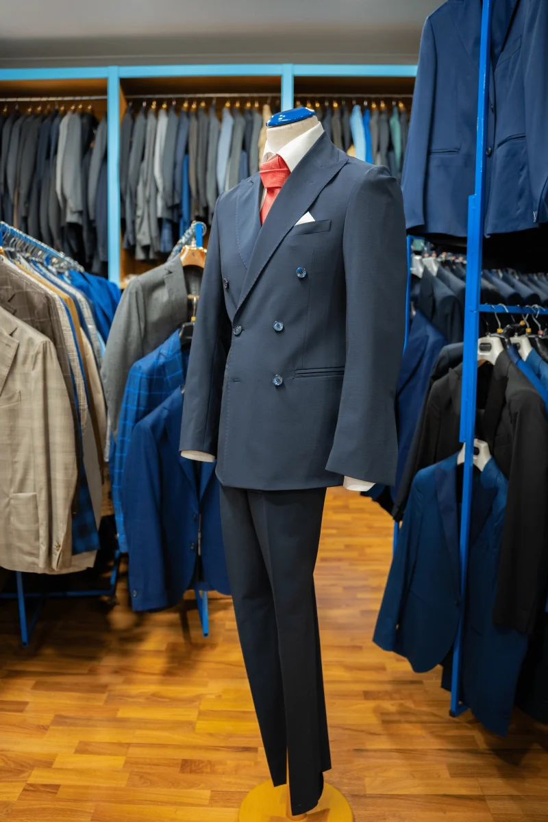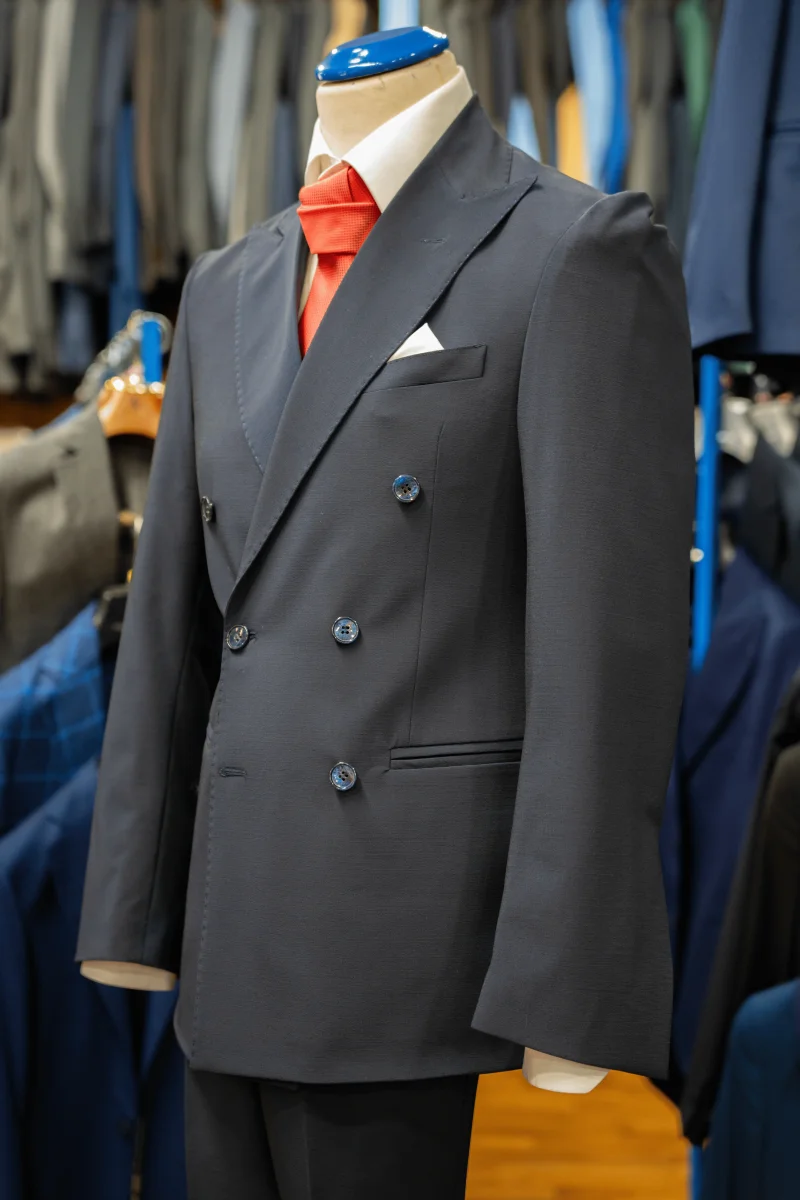 Abito blu notte doppiopetto sei bottoni in tasmania strech del loro piana.