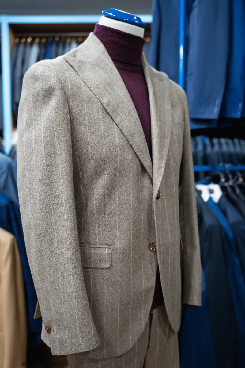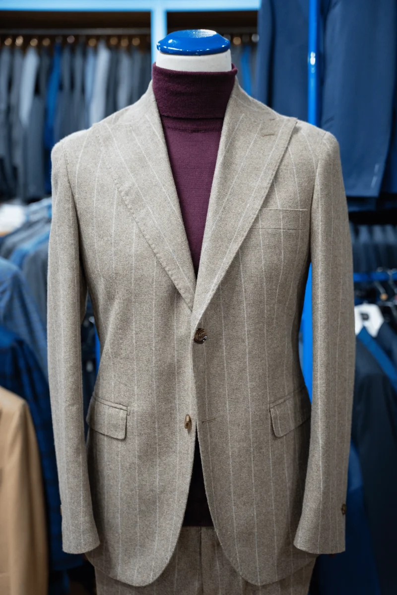 ABITO GESSATO INVERNALE FONDO BEIGE RIGO GRIGIO CHIARO.