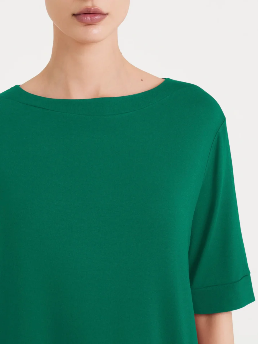 Il girocollo, dal design essenziale avvolge lo scollo, mentre le maniche 3/4 offrono una copertura ideale per tutta la giornata.