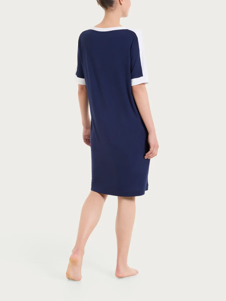 Realizzato con un tessuto fresco e traspirante in jersey elasticizzato di viscosa, una fibra di origine cellulosica che unisce le migliori qualità della seta e del cotone.