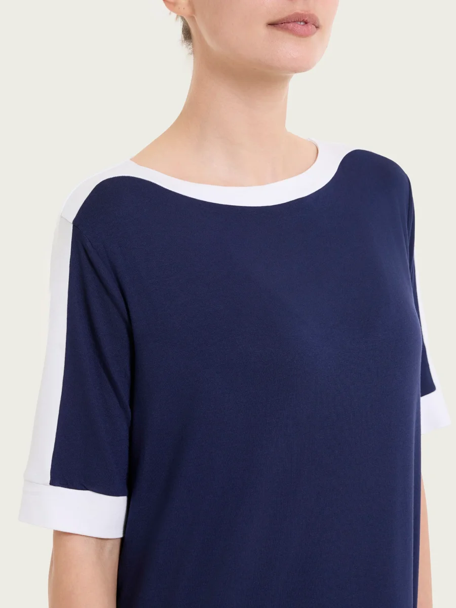 Il girocollo, dal design essenziale avvolge lo scollo, mentre le maniche 3/4 offrono una copertura ideale per tutta la giornata.