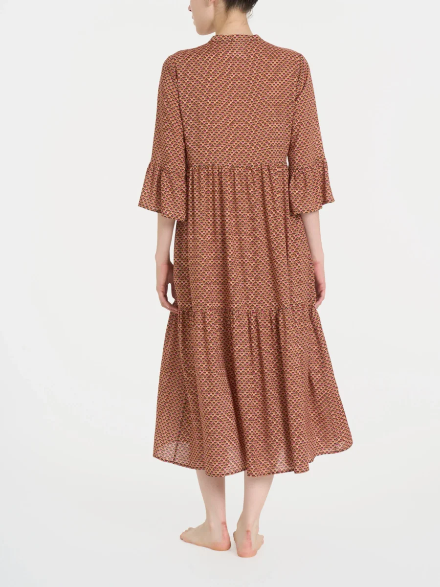 Vestito lungo estivo con balze da donna con manica 3/4 in Ecoseta.