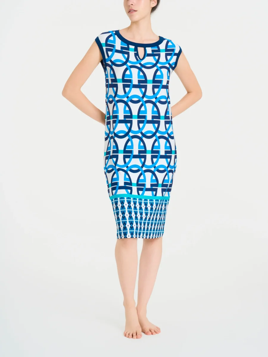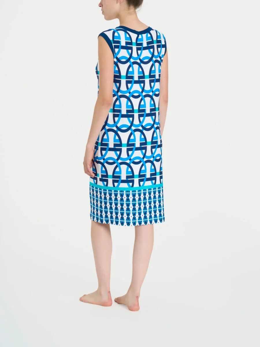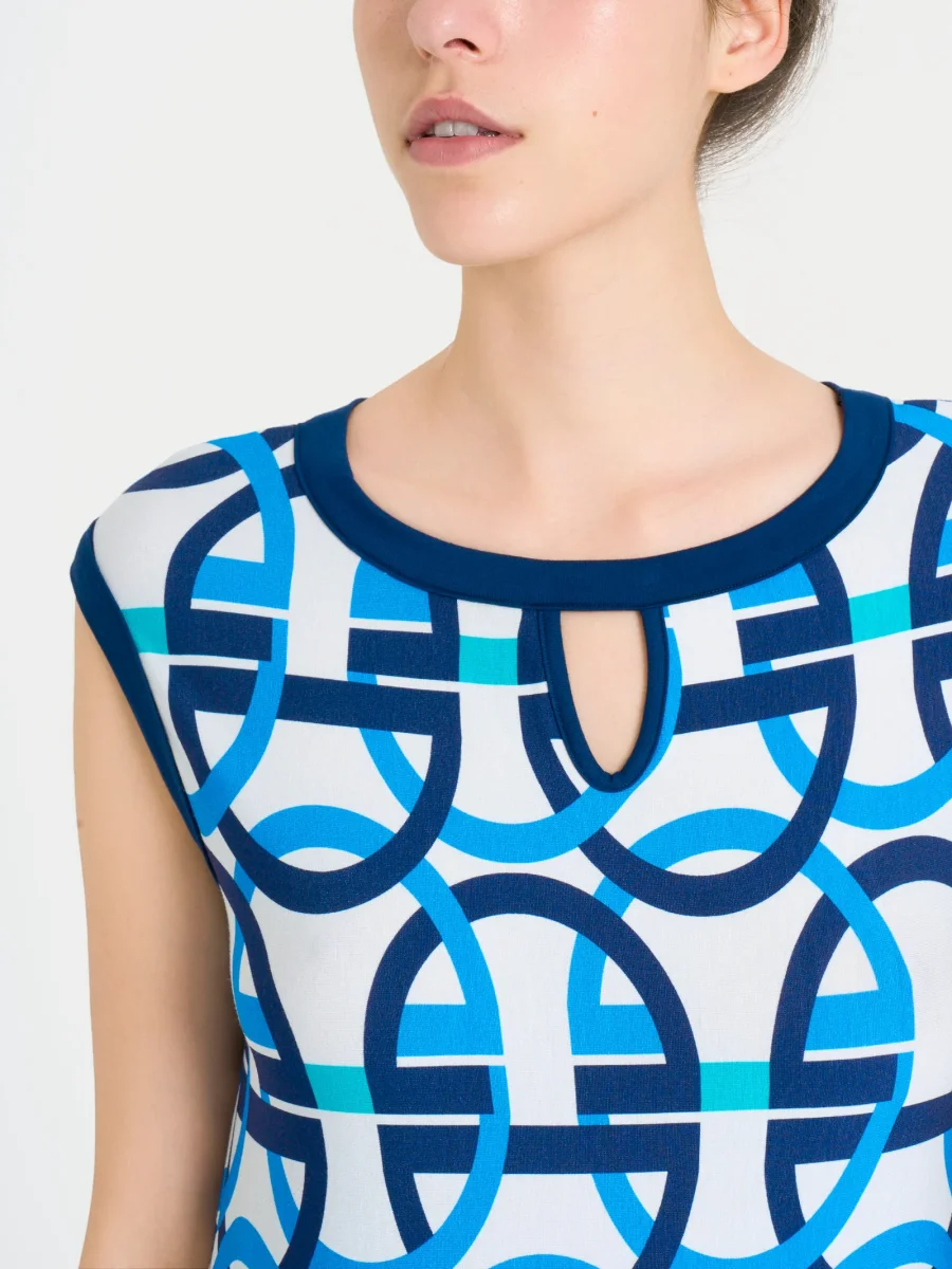 Caratterizzato dalla fantasia a cerchi, che si estende su tutto il capo, dona una nota di modernità e originalità, creando un effetto visivo dinamico che cattura l’attenzione senza essere eccessivo.
