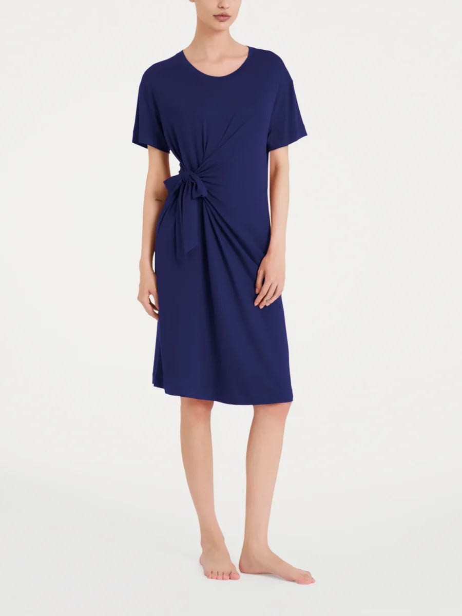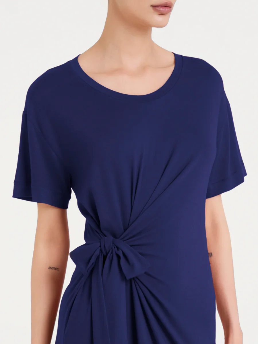 Vestito estivo girocollo da donna con elegante nodo in Viscosa Summer.