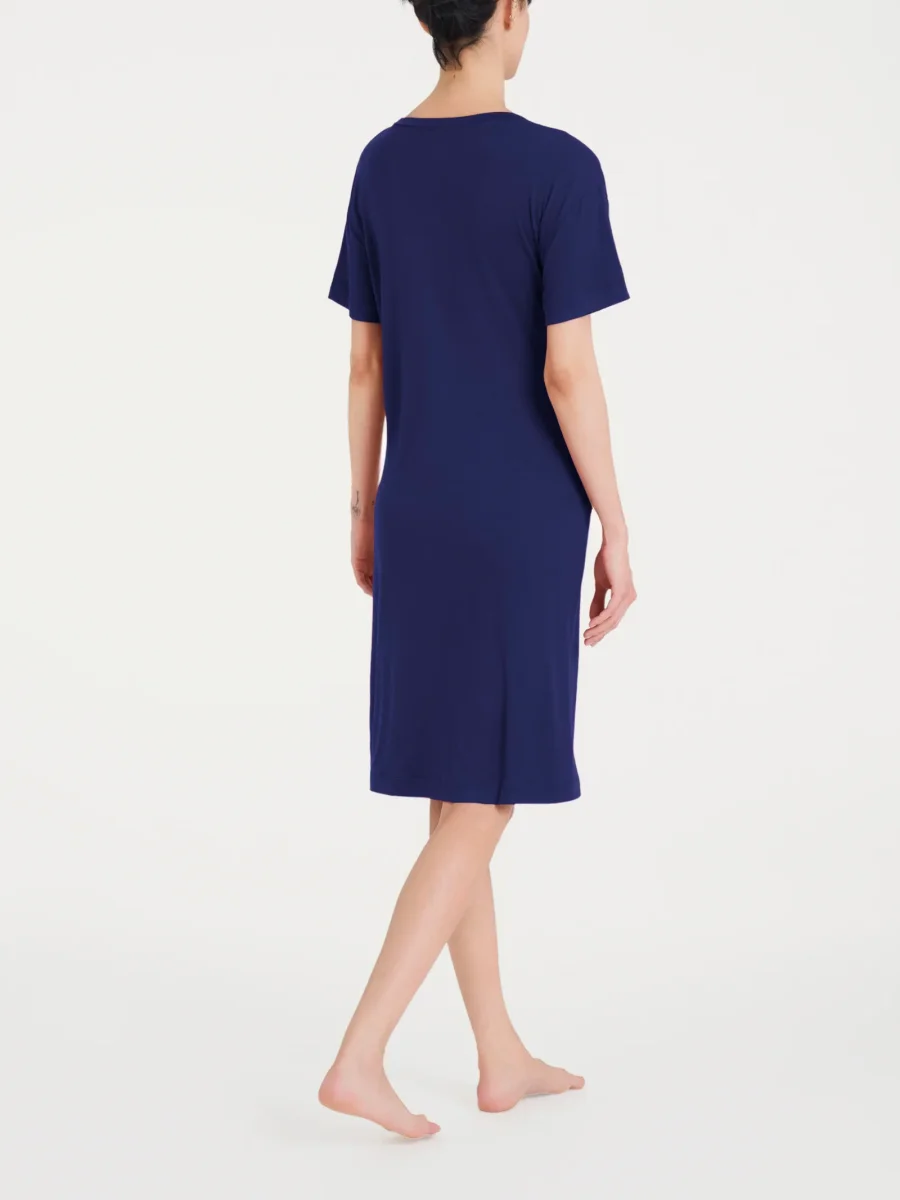 Il girocollo classico incornicia elegantemente il collo, mentre le maniche corte e la lunghezza al ginocchio garantiscono freschezza e comfort, rendendo l’abito ideale per diverse occasioni, dalle giornate calde alle serate eleganti.