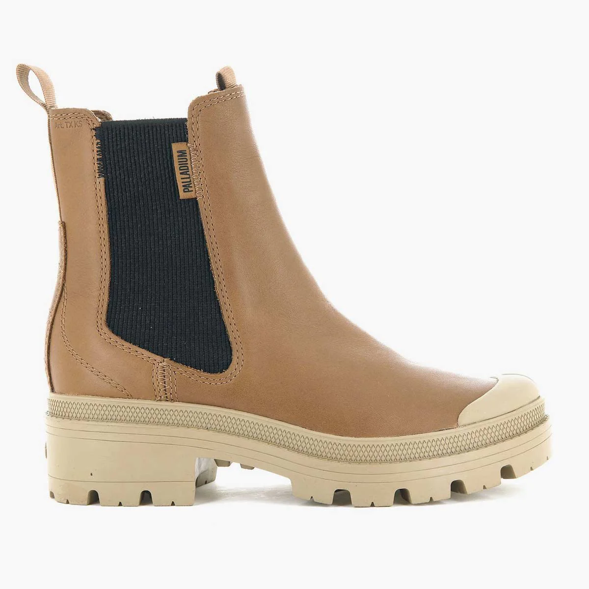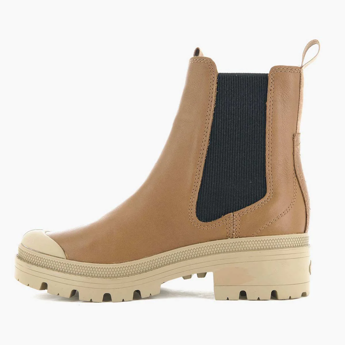 Beatles Pallabase in pelle resistente marrone, elastici laterali neri, punta stondata. Soletta Ortholite fustellata, suola sagomata beige, etichetta tessuta sul fianco laterale, interno in tessuto.