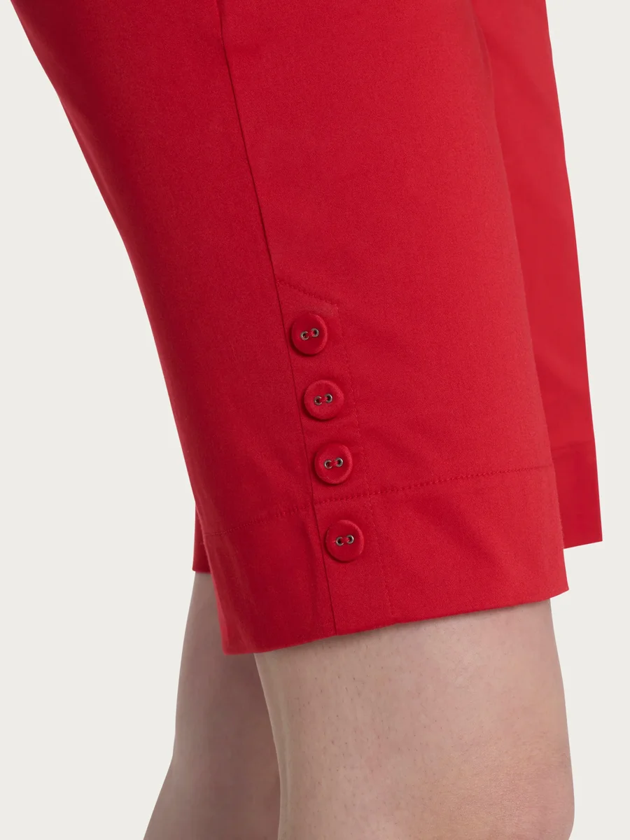 Questo modello senza zip è costruito con vita elasticizzata, tasche laterali e quattro eleganti bottoni applicati sul fondo i quali donano un tocco di stile.