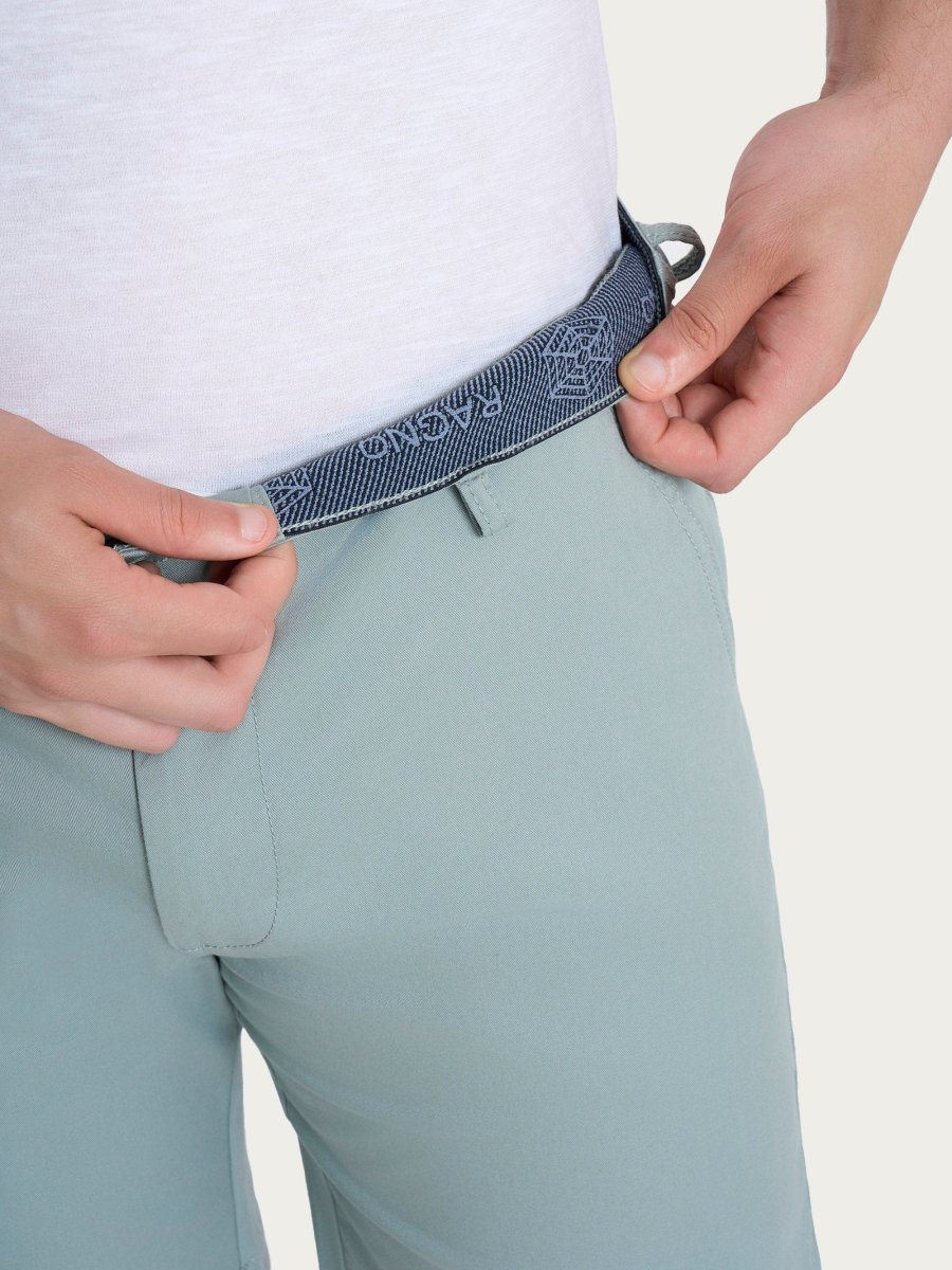 Pensati per adattarsi a ogni momento della giornata, i bermuda presentano un design classico arricchito da dettagli pratici come tasche capienti, passanti per cintura e una chiusura con bottone, che aggiunge un tocco di eleganza casual. La vera innovazione, però, è la Comfort Belt, un elastico interno alla vita che assicura una vestibilità impeccabile e un supporto unico, ispirandosi all’esperienza Ragno nel settore dell’intimo.