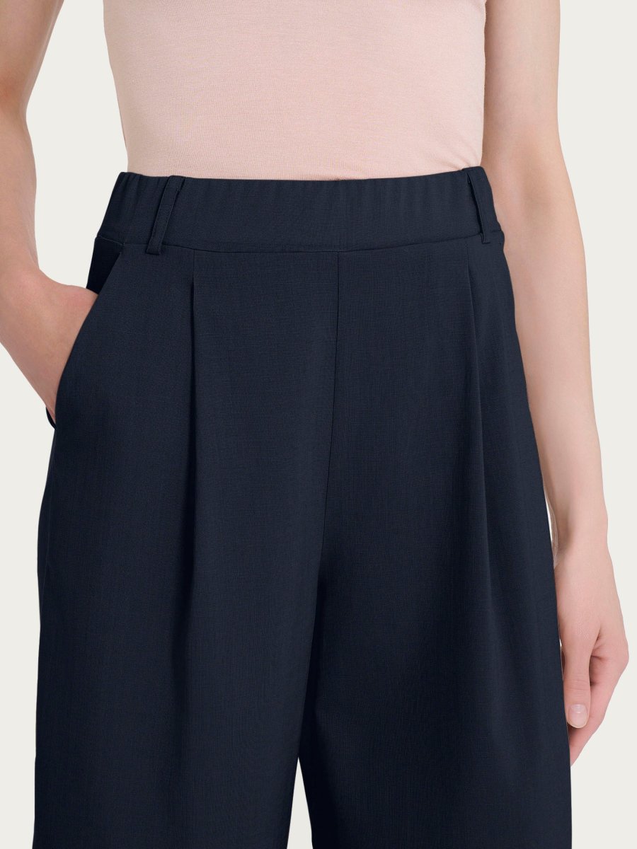 Questo modello con tasche è costruito con vita elasticizzata, con pratiche tasche laterali alla francese, pinces e vita parzialmente arricciata. Ha inoltre anche i passanti per la cintura per permetterti di aggiungere quel tocco di stile in più, comodo come indossare un leggings pur mantenendo l’eleganza di un pantalone.