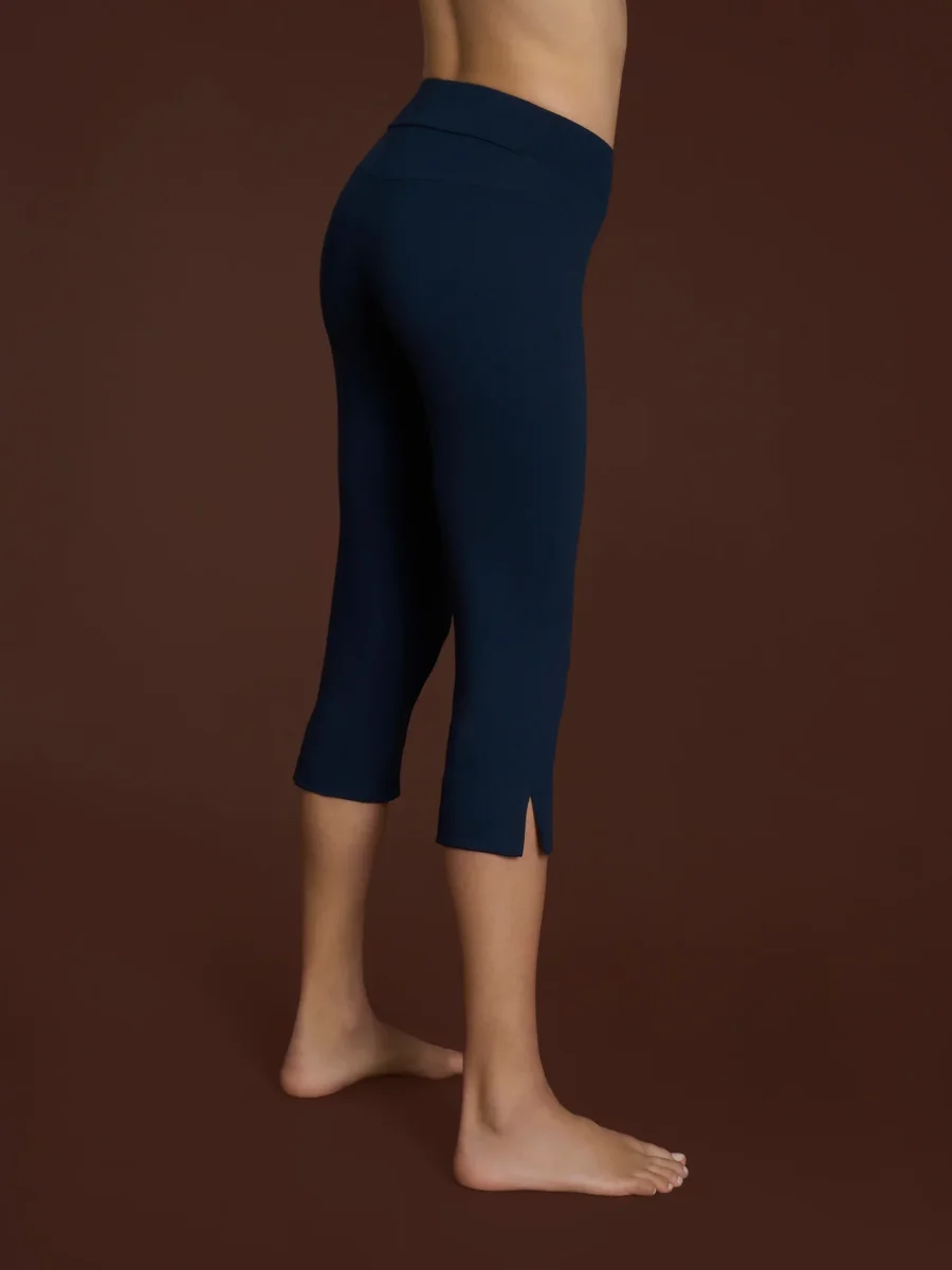 Questi leggings da donna a pinocchietto con vita alta, pratici spacchetti sul fondo e baschina nella parte posteriore, nascono dal mix perfetto di comfort e stile.