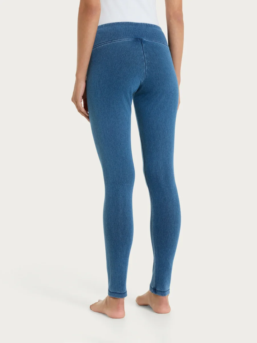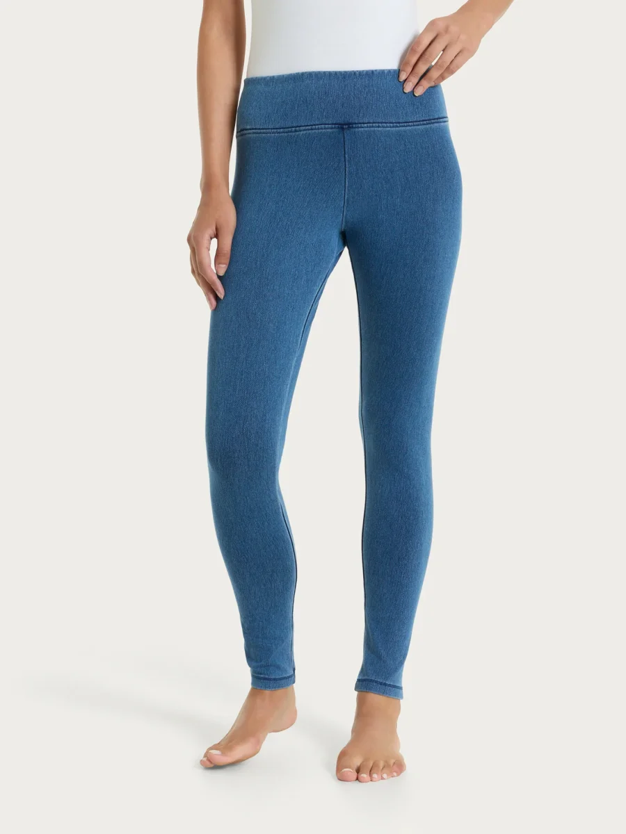 Leggings lungo tinta unita da donna in maglia denim.