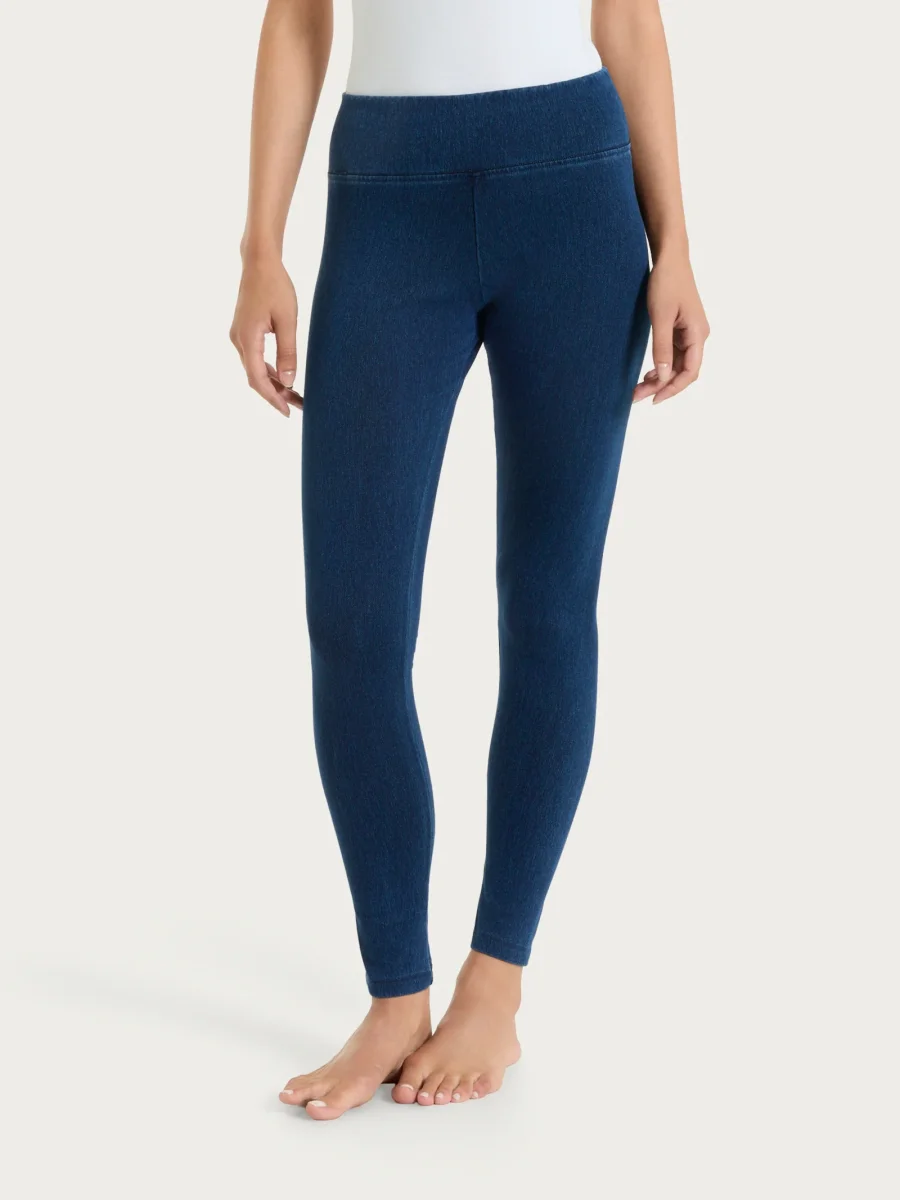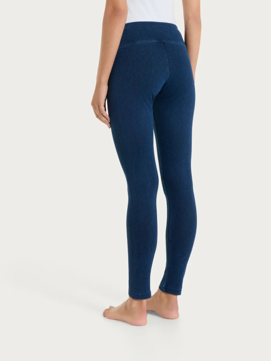 Leggings lungo tinta unita da donna in maglia denim.