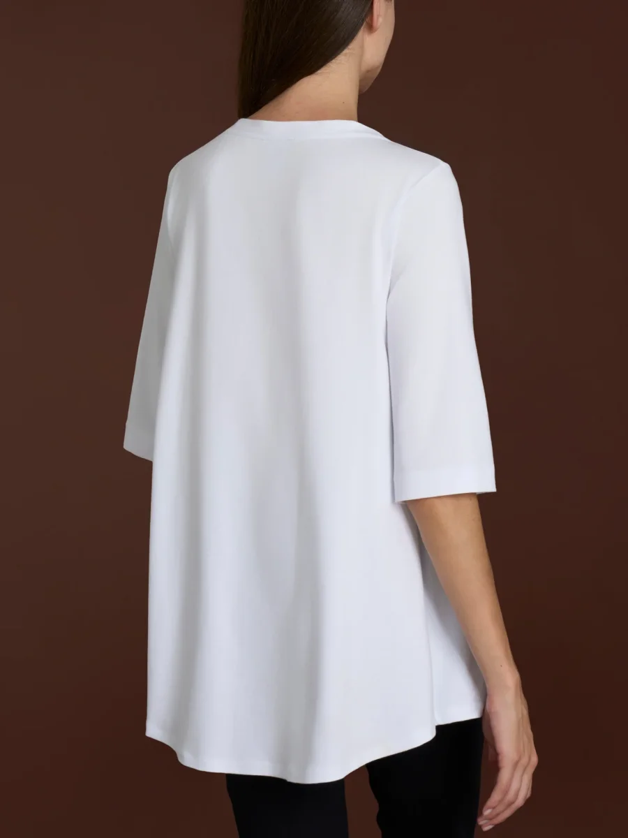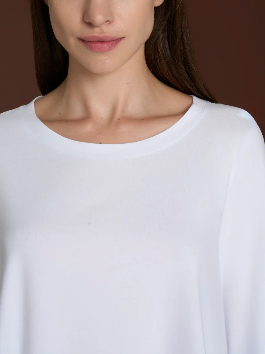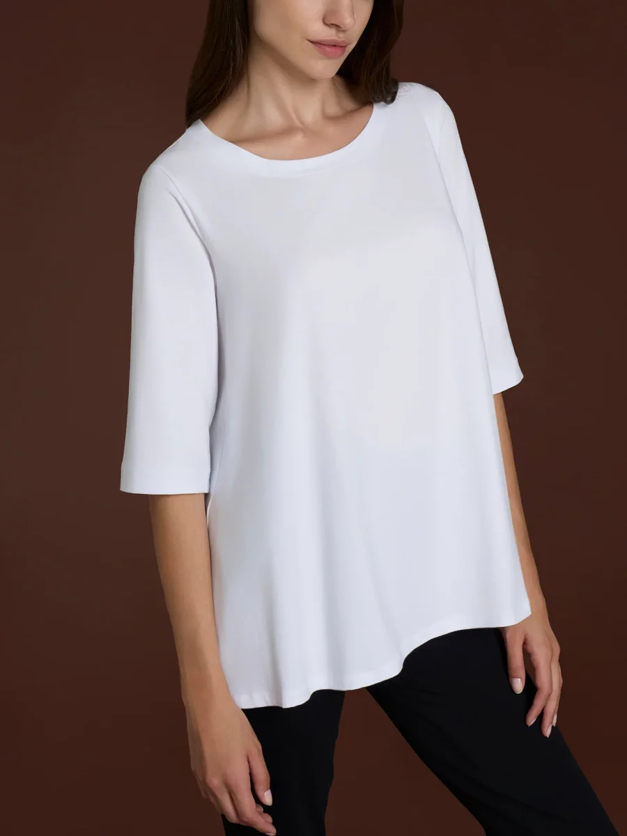 Maglietta classica tinta unita da donna con girocollo e manica 3/4 in delicato cotone elasticizzato extra fine.