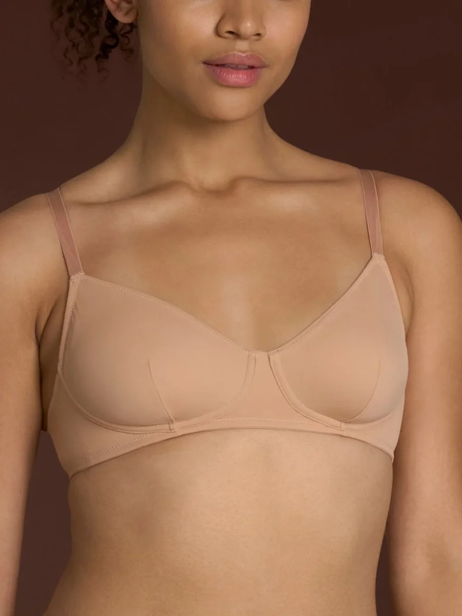 Il design sobrio e senza ferretto lo rende ideale per chi cerca un sostegno confortevole e discreto, perfetto sotto ogni tipo di abbigliamento.