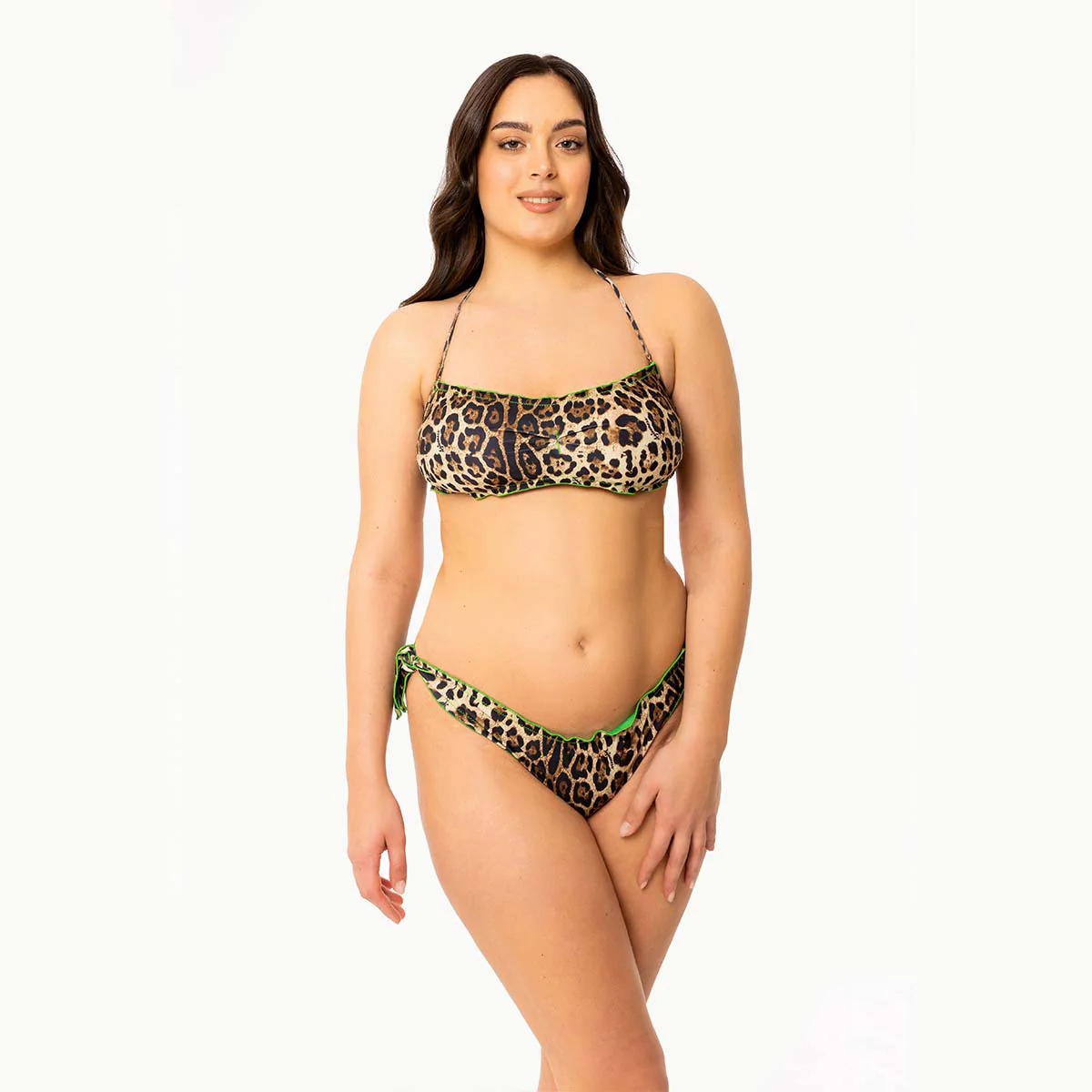 Bikini 2 pezzi in fantasia Exchange Leo, top a fascia e e slip frou frou. Il top è dotato di coppe estraibili.