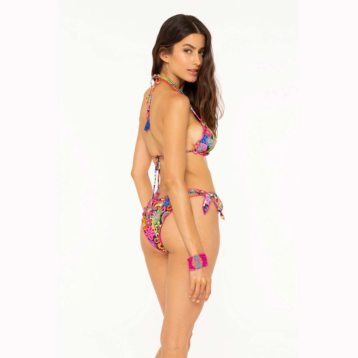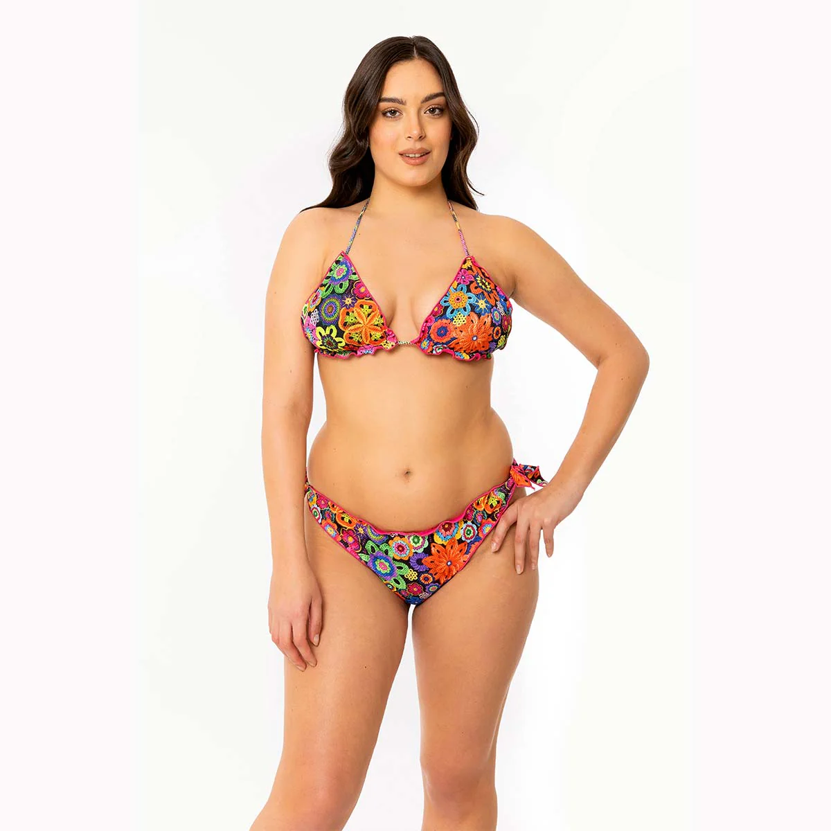 Bikini triangolo con slip sbambolato, in fantasia Las Dallias.