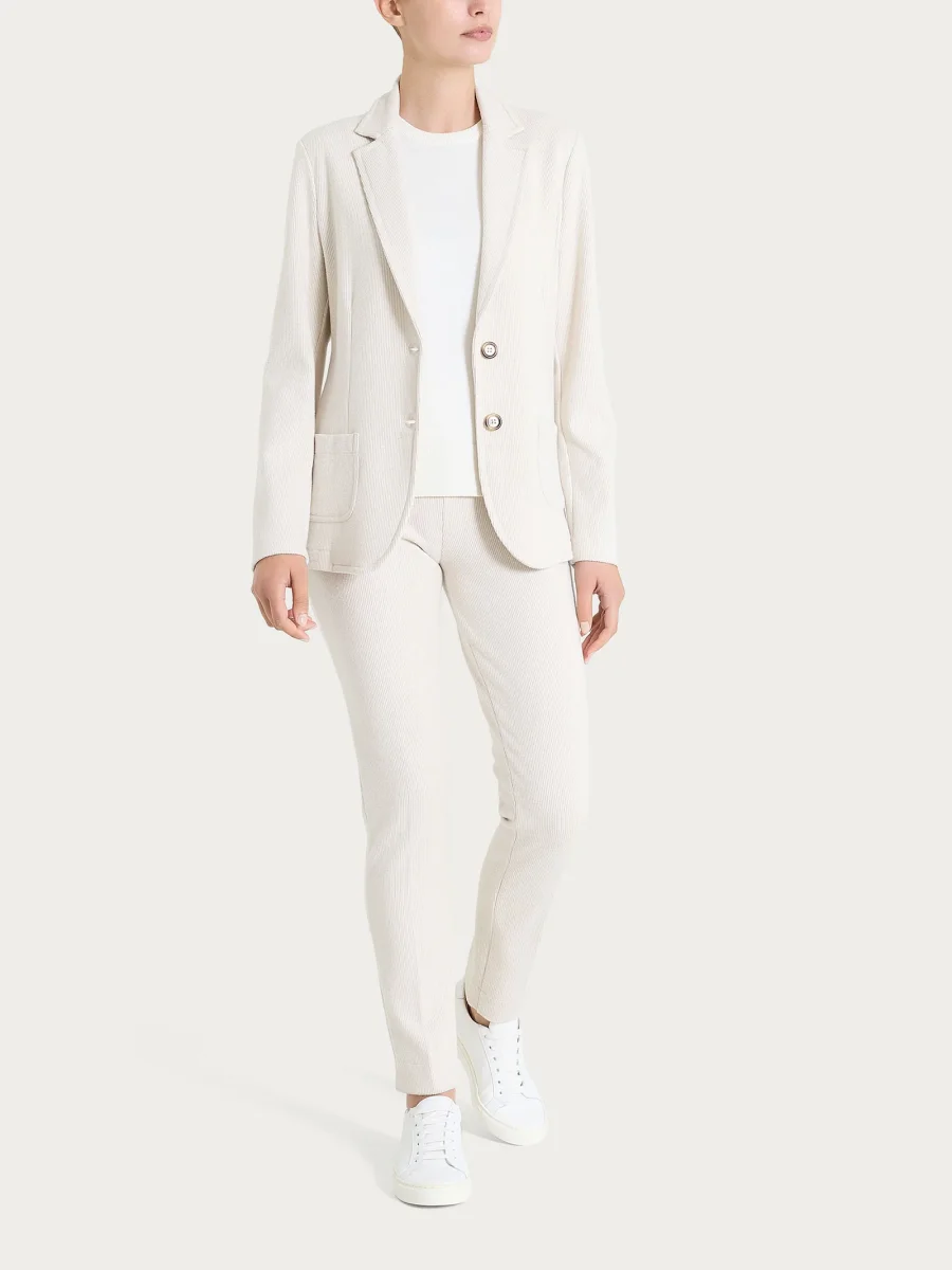 Questo modello è costruito con chiusura a due bottoni con collo rever classico e ha una vestibilità regular pensata per valorizzare ogni silhouette e offrire comfort.