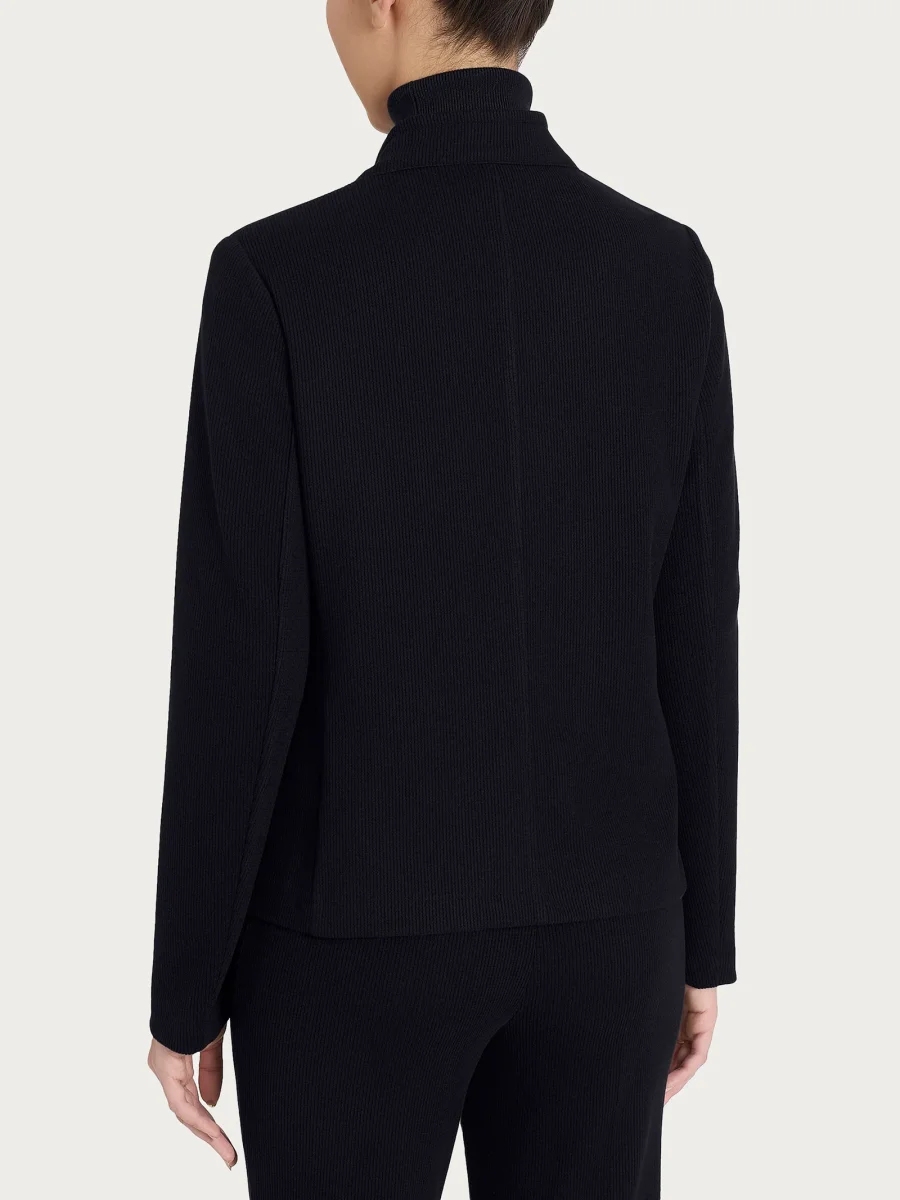 Il blazer in tinta unita da donna con collo alzato è un capo elegante e contemporaneo che offre un’interpretazione moderna del classico blazer.