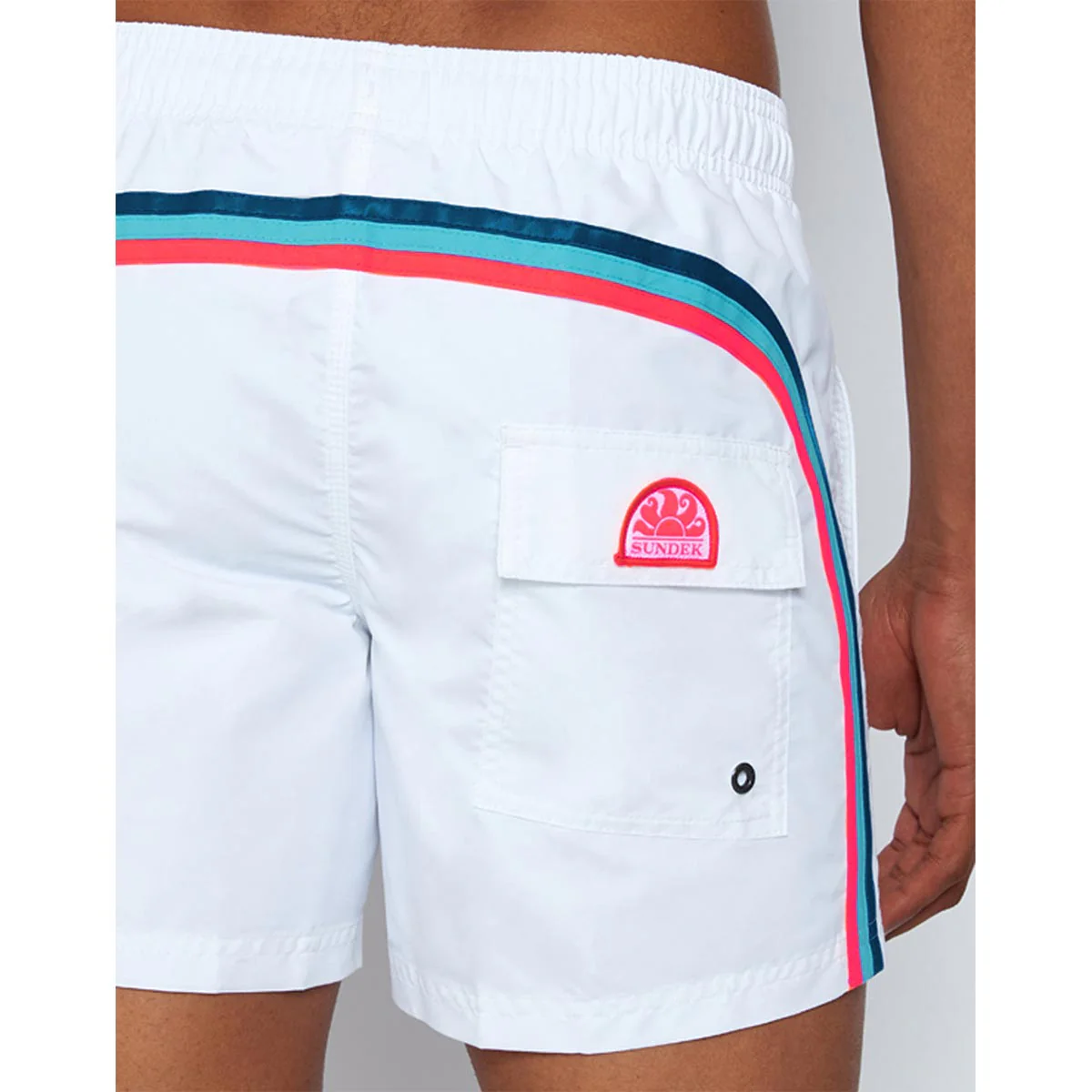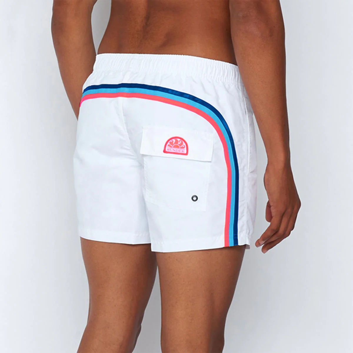 Shorts uomo mare corto e con vita elastica, coulisse e iconico arcobaleno Sundek sul retro.