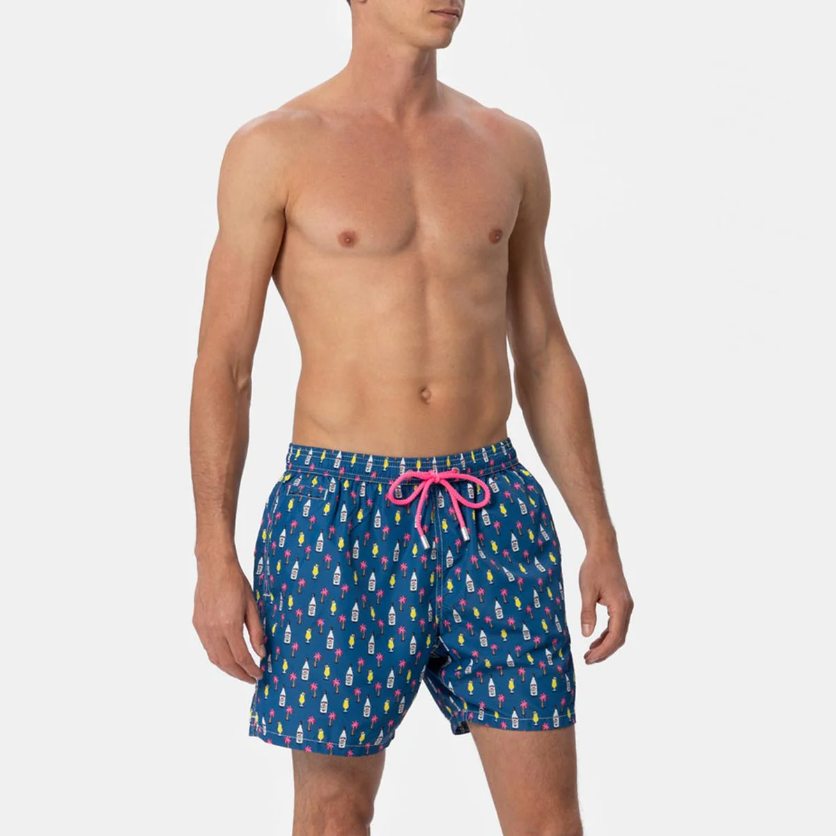 Stampa summer cocktail e palme su sondo integrale blu