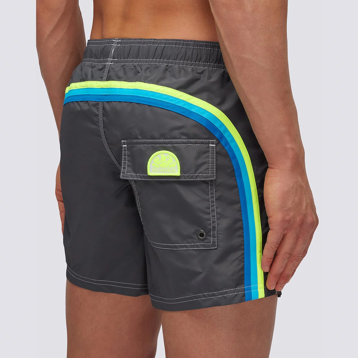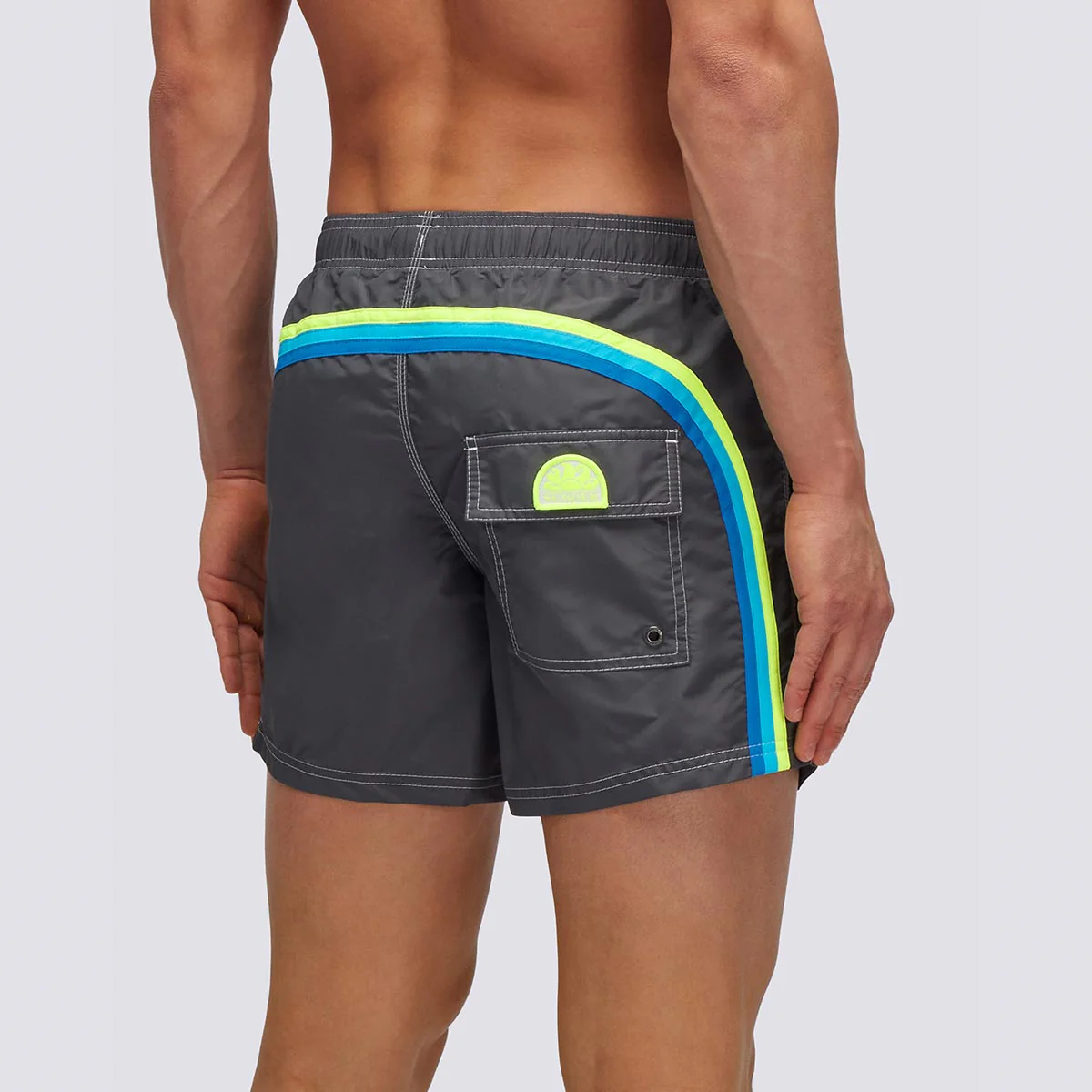 Shorts uomo mare corto e con vita elasticata, coulisse e iconico arcobaleno Sundek sul retro. Boxer con slip interno in rete