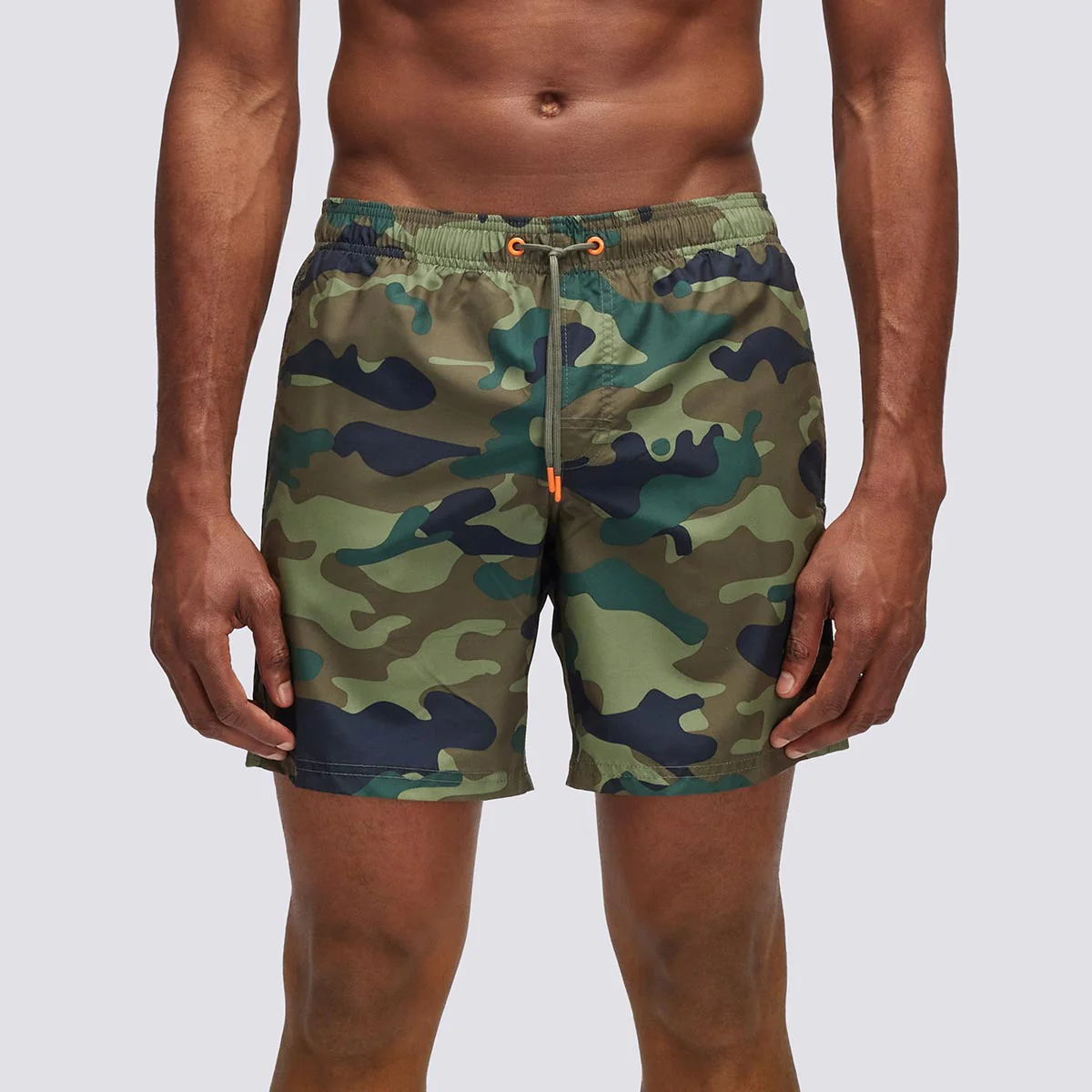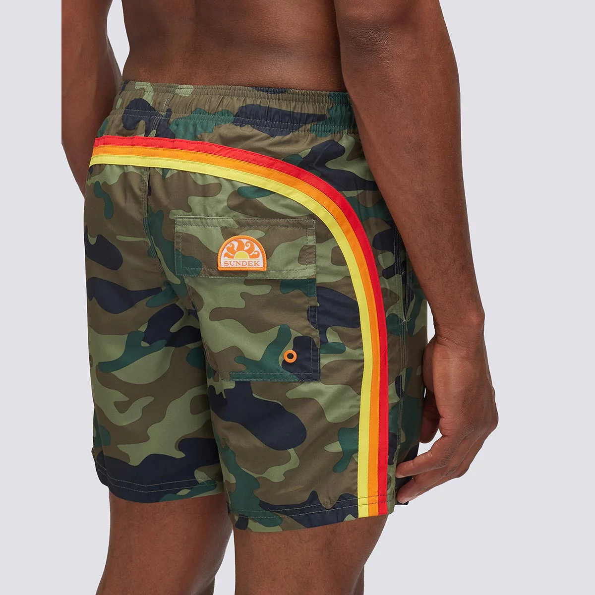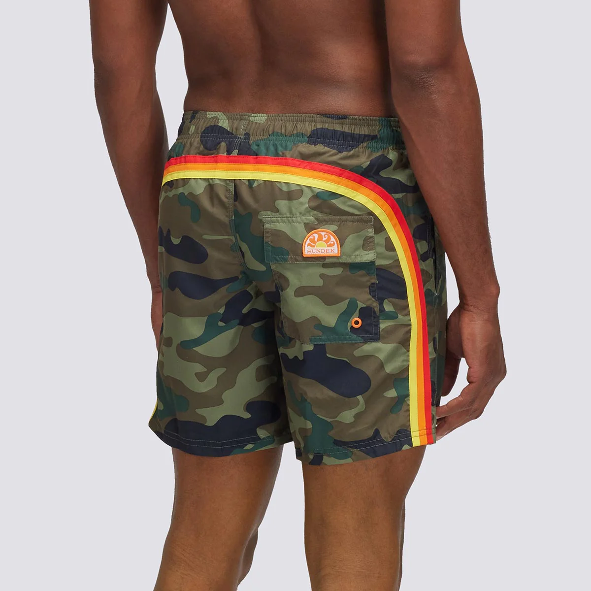 Shorts uomo mare corto e con vita elastica, coulisse e iconico arcobaleno Sundek sul retro.