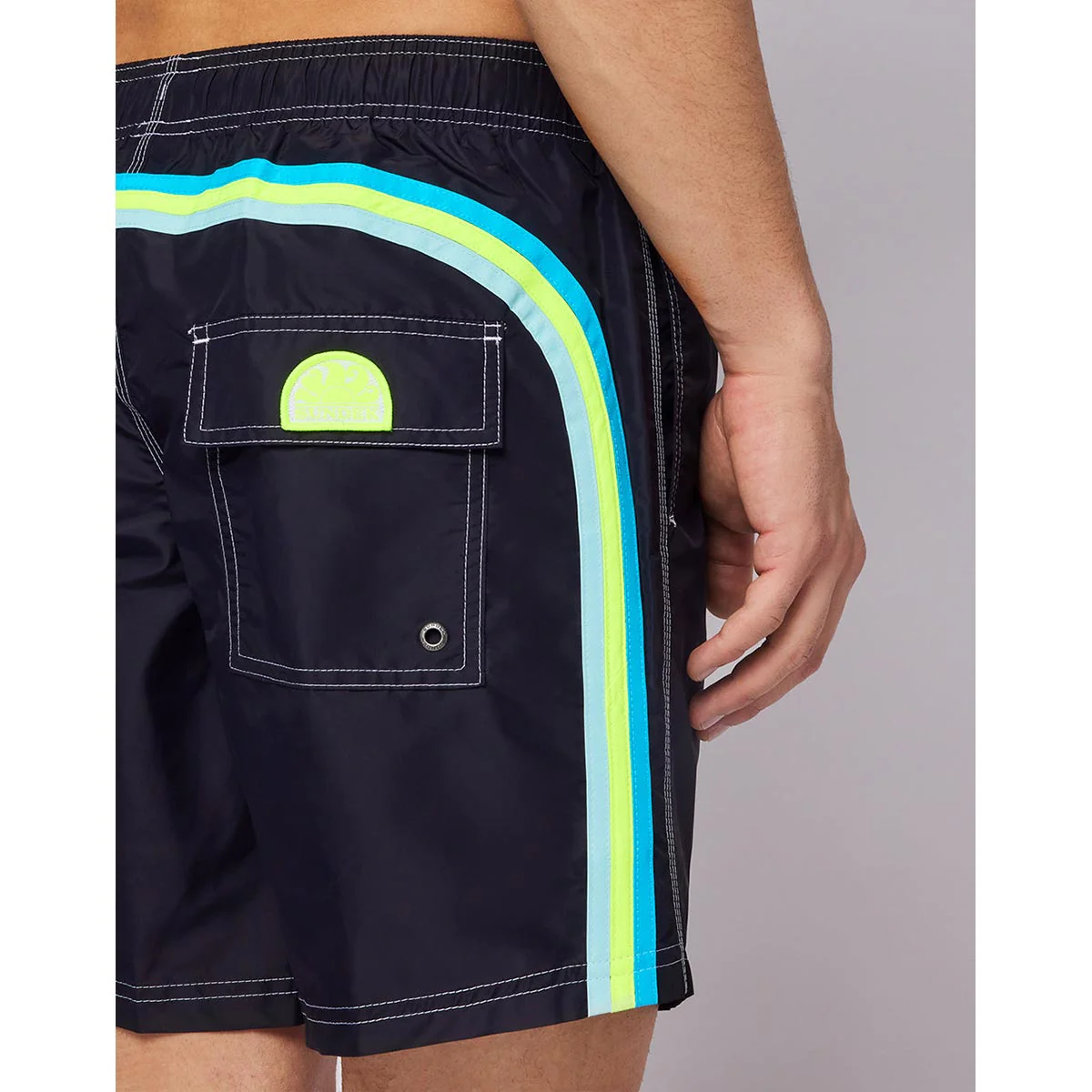 Shorts uomo mare corto e con vita elastica, coulisse e iconico arcobaleno Sundek sul retro.