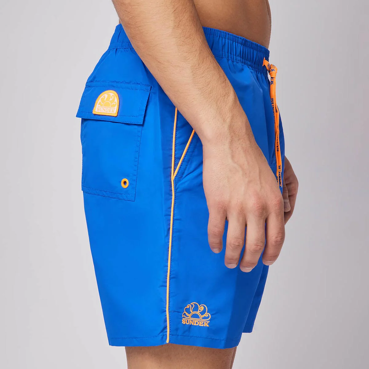 Realizzato in Poliestere basic micropeach, presenta sul retro una piccola tasca e ai lati del piping a contrasto.