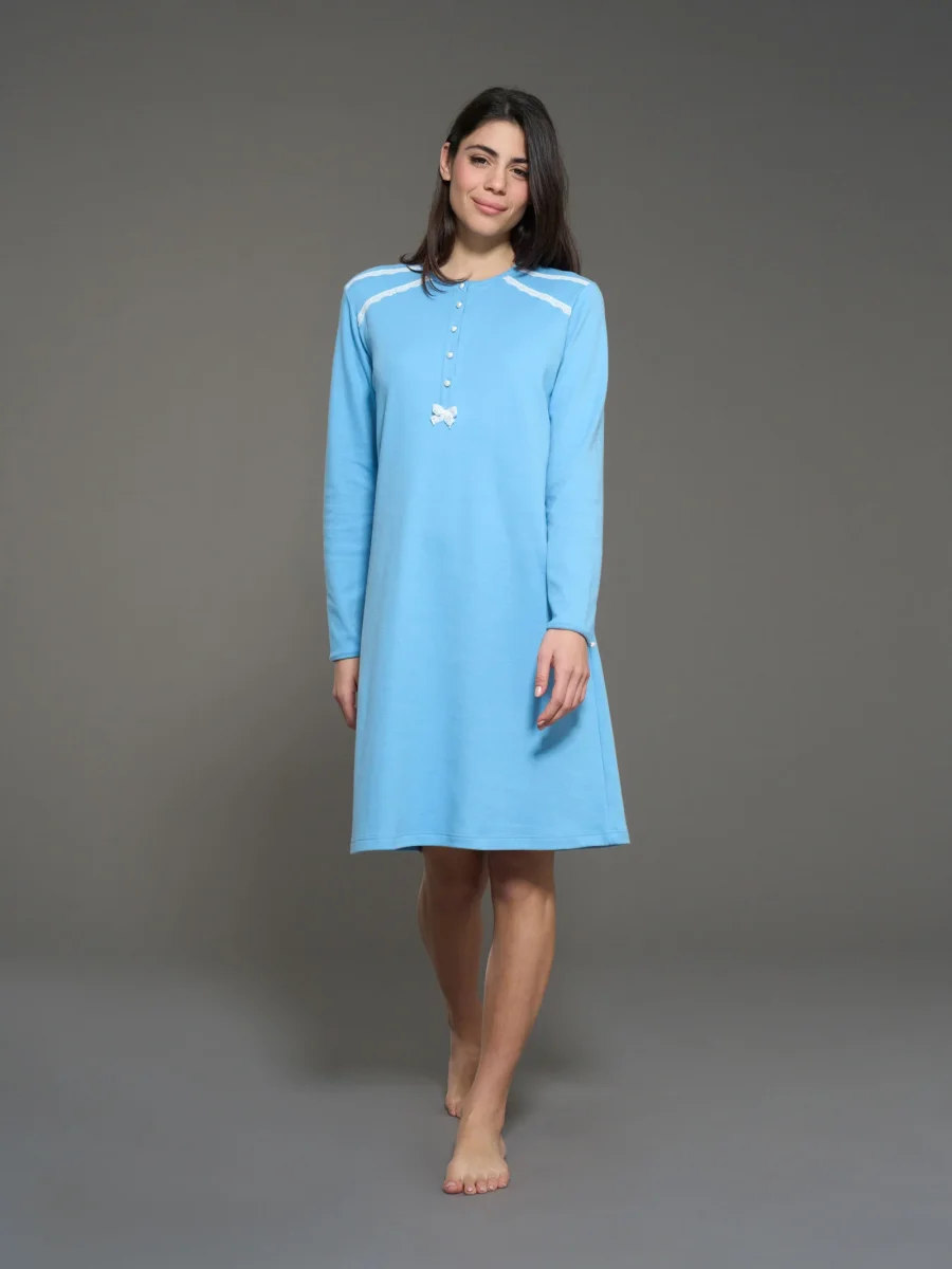 Immergerti in un universo di comfort con la camicia da notte da donna in interlock di caldo cotone.