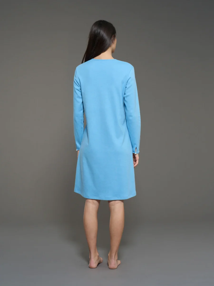 Camicia da notte a serafino in interlock di cotone – Dusk Blue