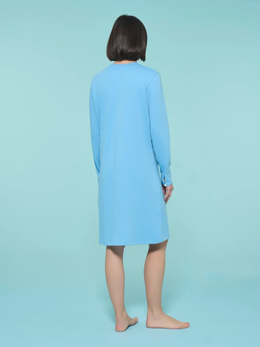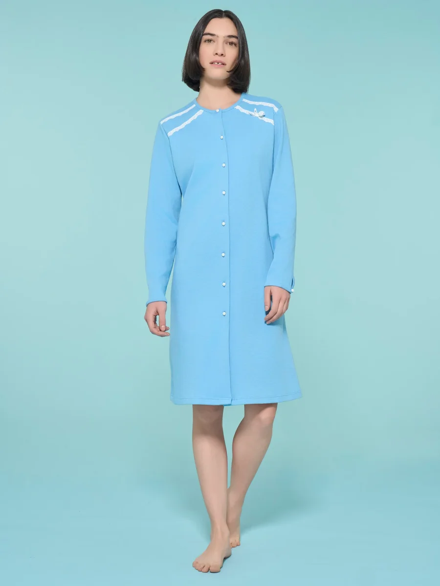 Immergerti in un universo di comfort con la camicia da notte aperta da donna in interlock di caldo cotone.