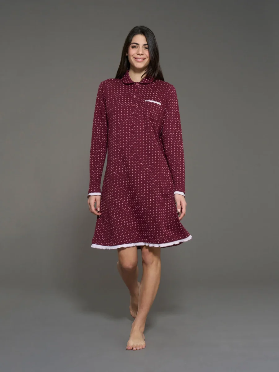 Scopri il comfort e l’eleganza senza tempo della camicia da notte da donna in interlock di caldo cotone.