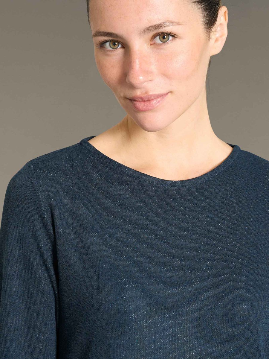 Grazie al Cotton Eco Pile e Lurex questo capo accarezza la tua pelle con morbidezza e freschezza, ma allo stesso tempo aggiunge un tocco di raffinatezza e glamour ad ogni tuo movimento.