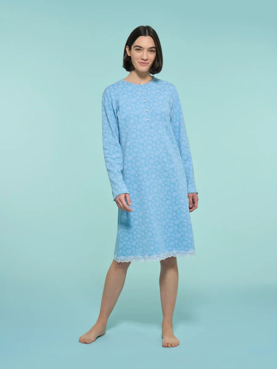Scopri l’eleganza senza tempo della camicia da notte da donna in interlock di caldo cotone.