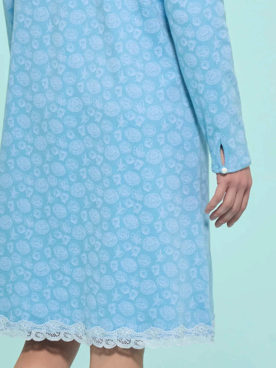 Con il suo elegante collo a serafino e la fantasia floreale, questa camicia da notte unisce comfort e stile.