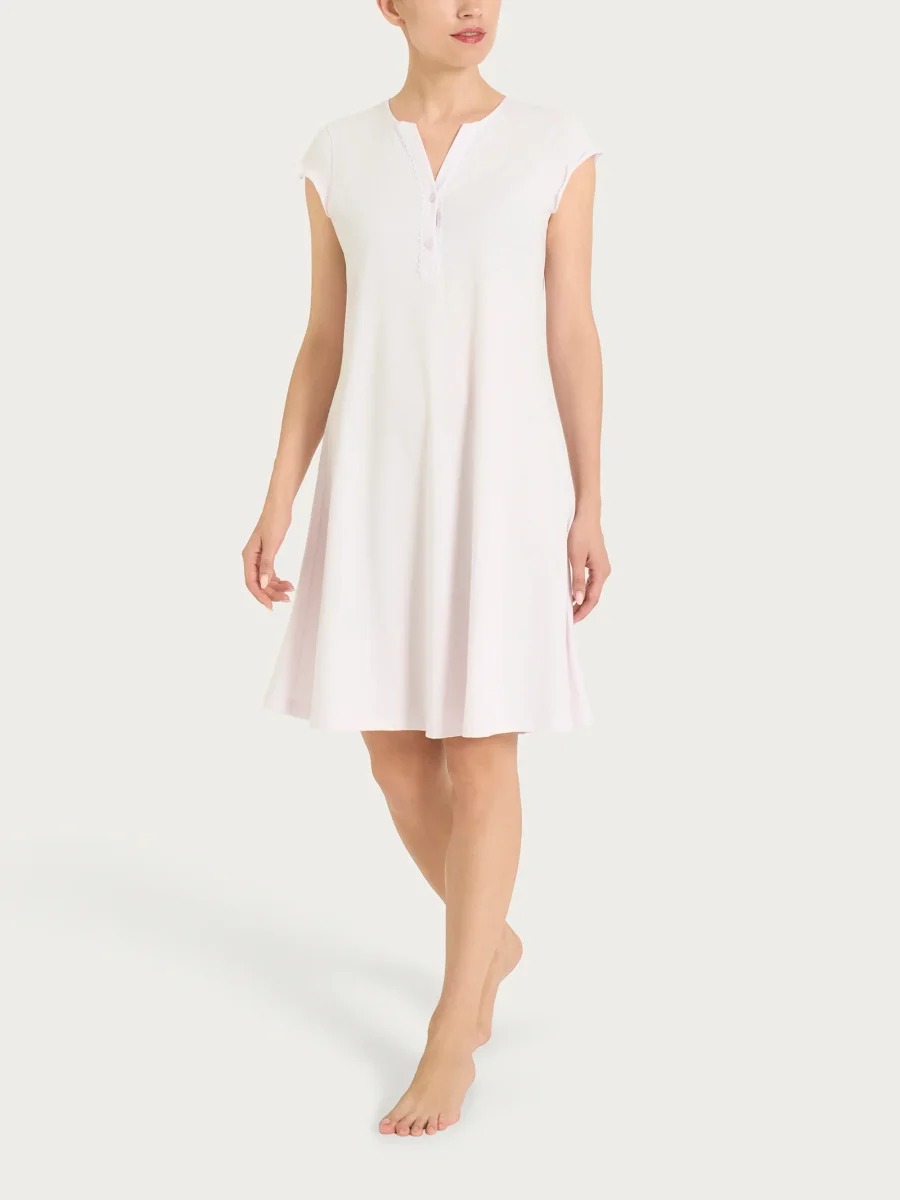 Camicia da notte tinta unita con collo a serafino in Jersey di Cotone – Orchid Tint