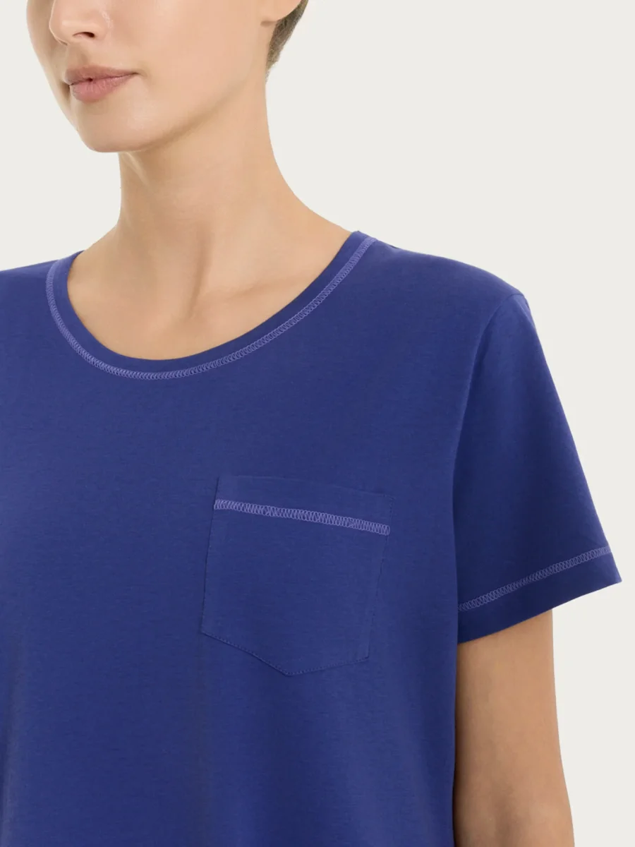 Questo capo è caratterizzato dal girocollo e le maniche corte, una combinazione fresca e pratica pensata per garantire comfort e libertà di movimento durante la notte.