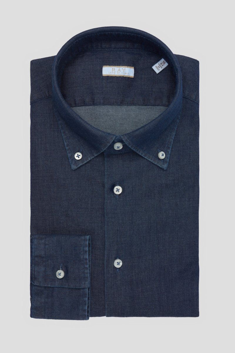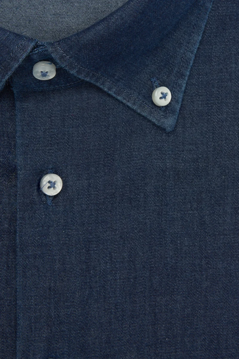 Descrizione: camicia realizzata artigianalmente in Italia, puro cotone pregiato.Con colletto classico button-down, i bottoni in madreperla..Fascino ed eleganza per questa camicia di jeans, un capo molto versatile che può essere indossato sia con un look casual, che uno più formale, perfetta da indossare tutto l’anno.Il fit è un taglio slim che aderisce al corpo e pince posteriori per un design pulito.