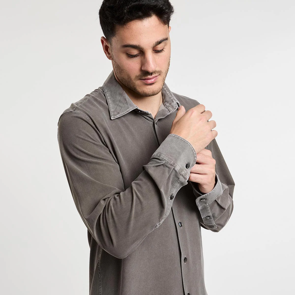 Camicia con colletto alla francese effetto delavé, realizzata in jersey elasticizzato a nido d’ape, la camicia assicura una vestibilità comoda e slim. Il tessuto fresco e traspirante la rende ideale per le stagioni calde, promettendo di mantenerti al fresco durante le giornate più calde. Comoda e di facile manutenzione, è caratterizzata da un’asciugatura rapida e non necessita di stiro.