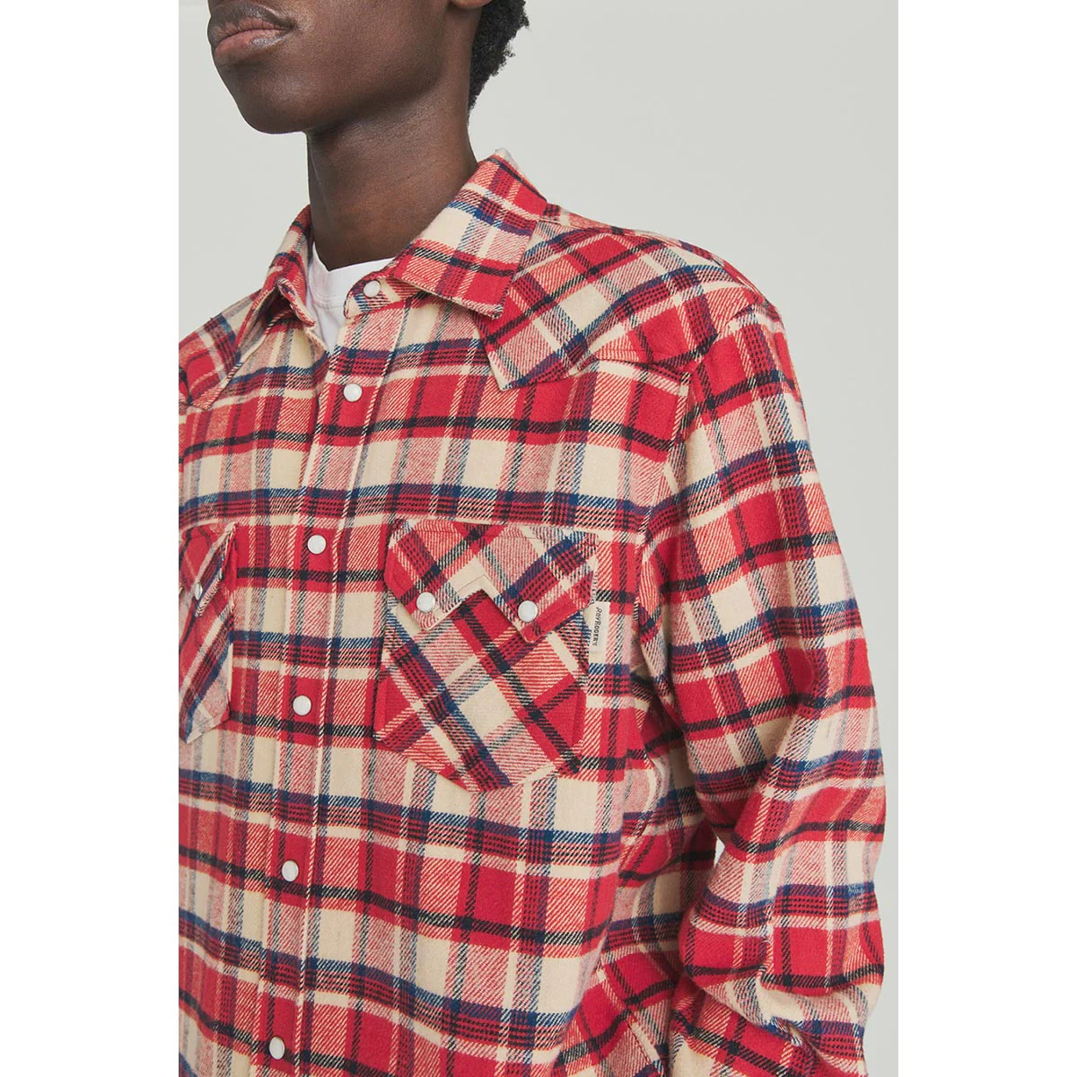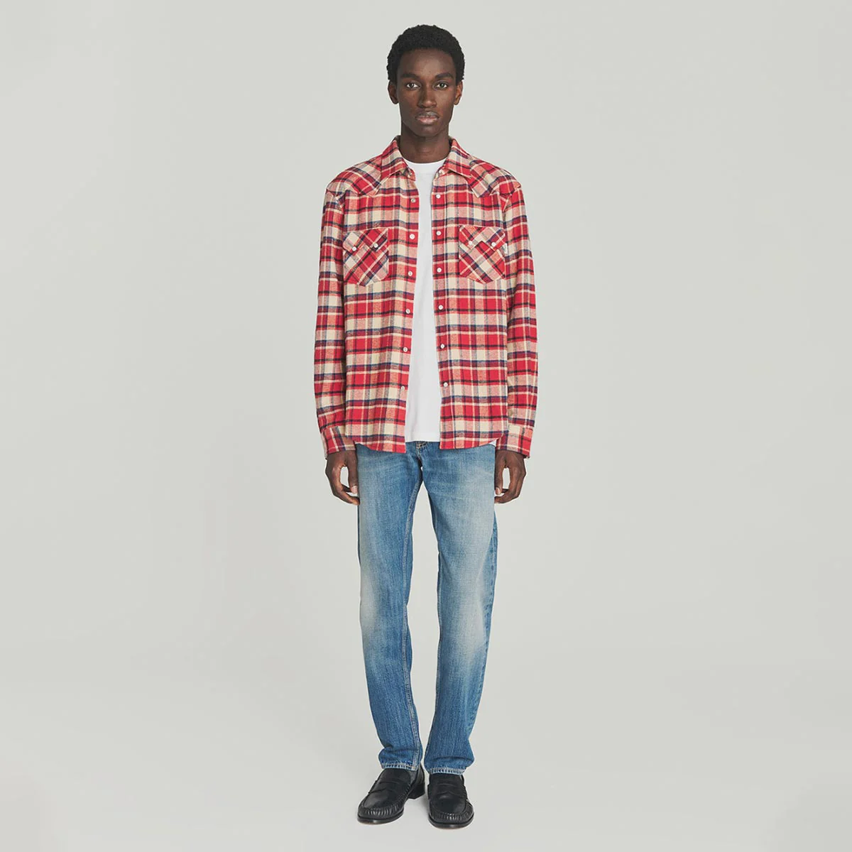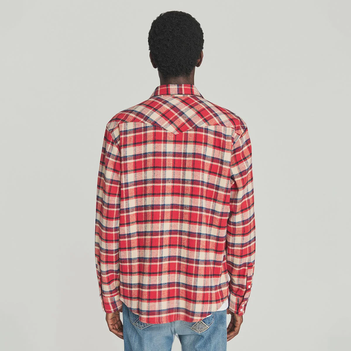 - Camicia Western in twill di cotone con motivo a quadri brushed.
