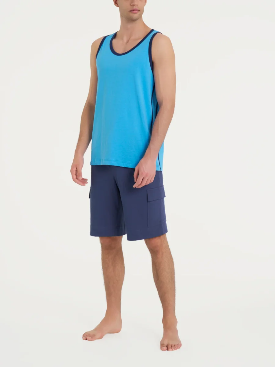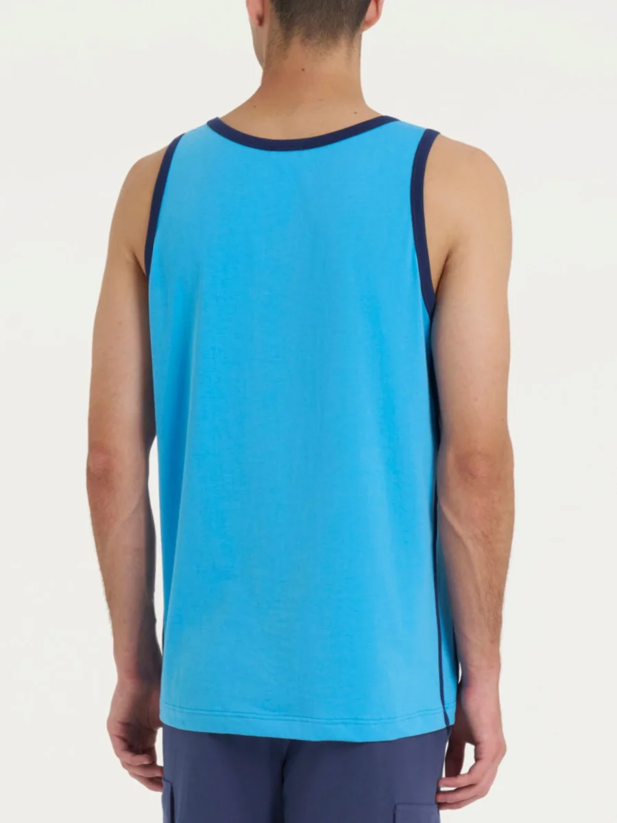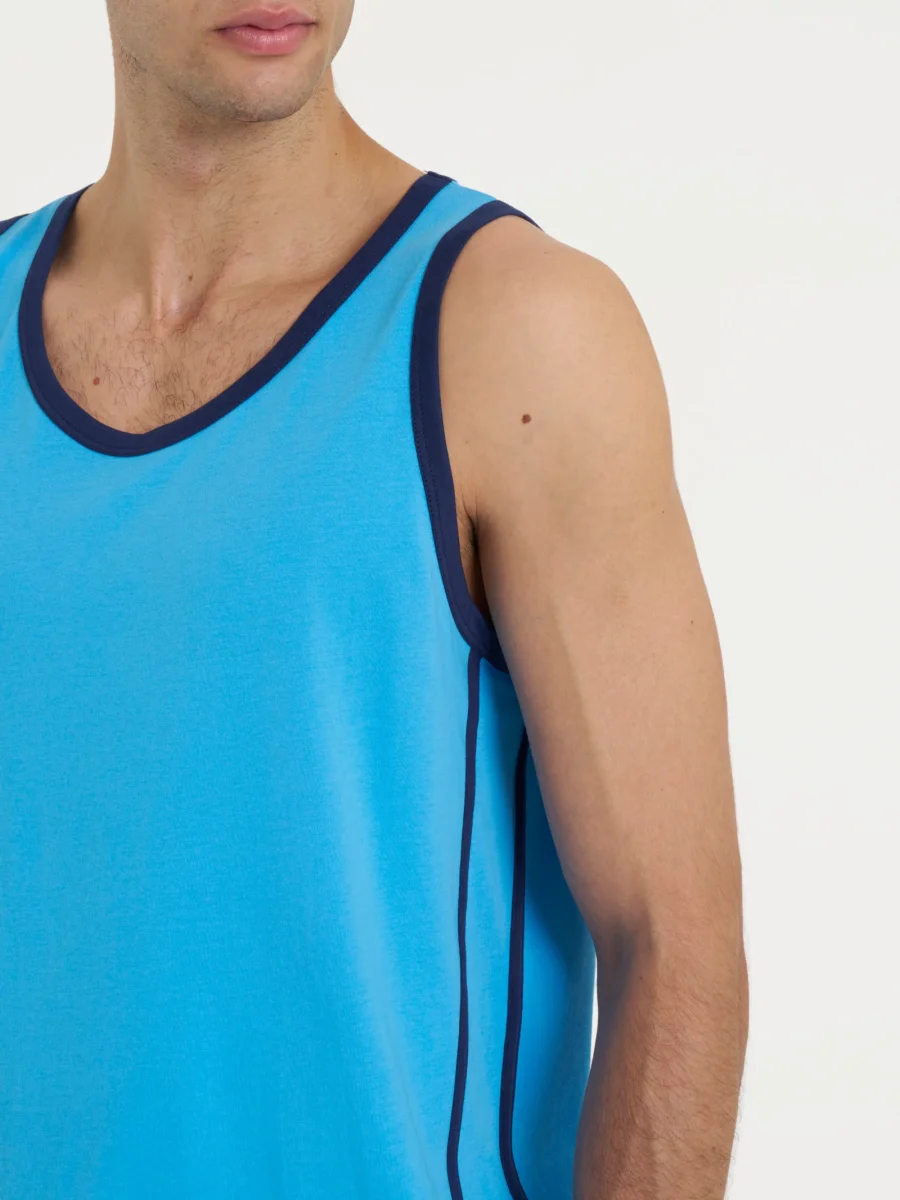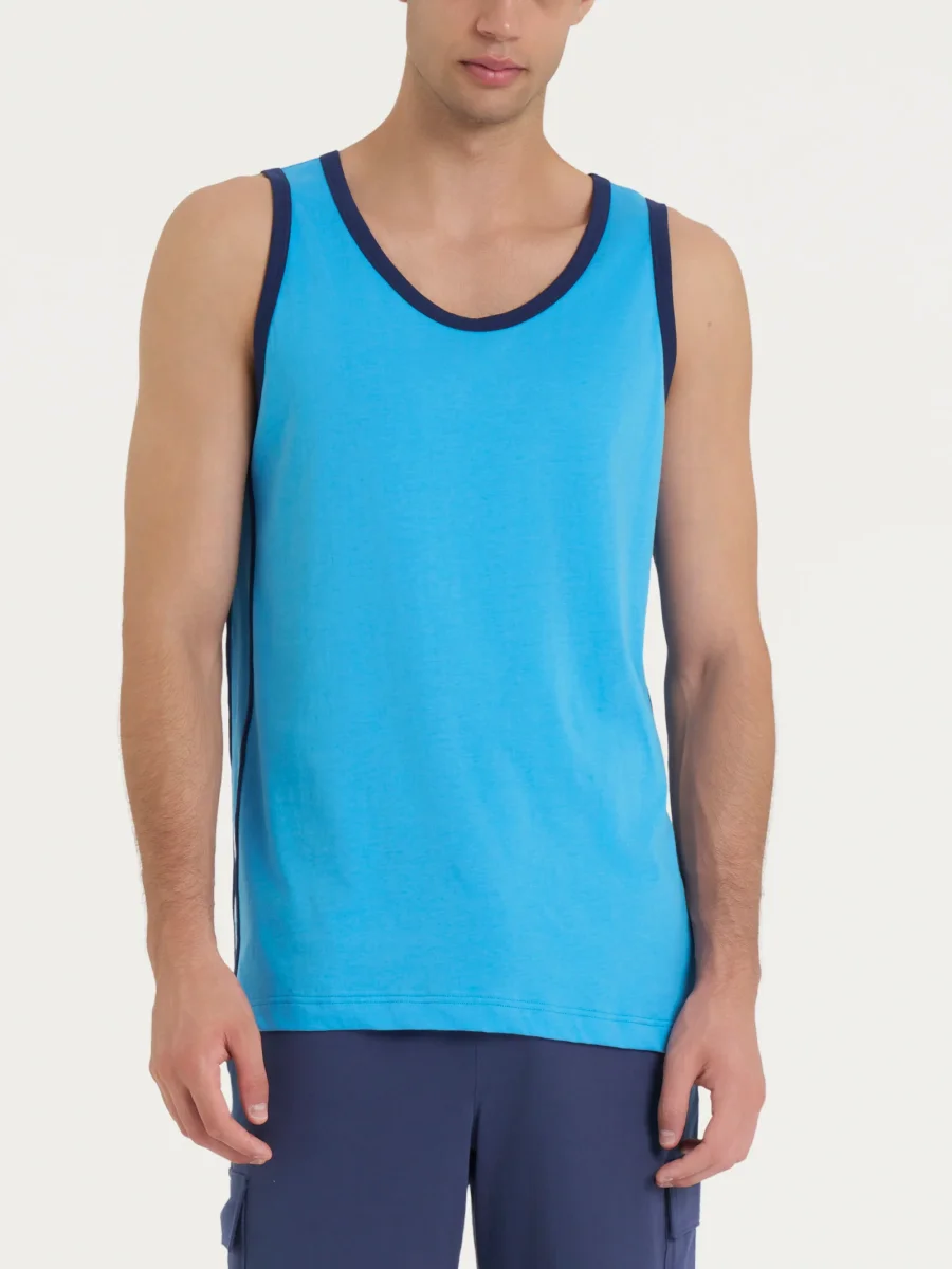 Canottiera a spalla larga da uomo con bordatura a contrasto sul collo e sul bordo delle maniche.