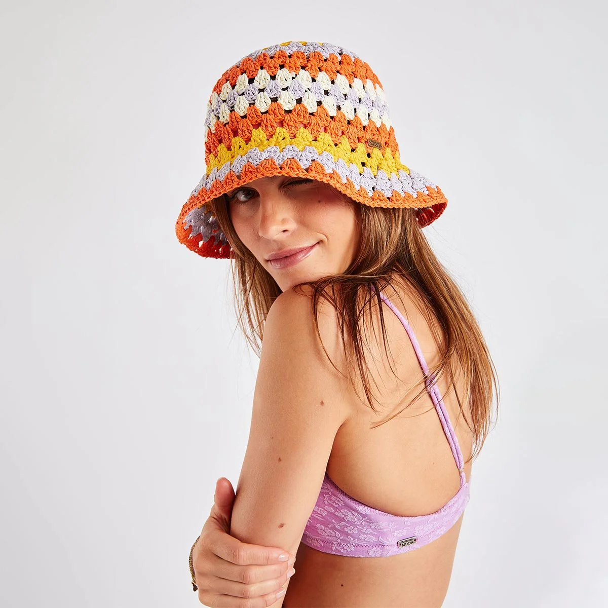 Cappello da pescatore all’uncinetto, colore arancione multicolore.