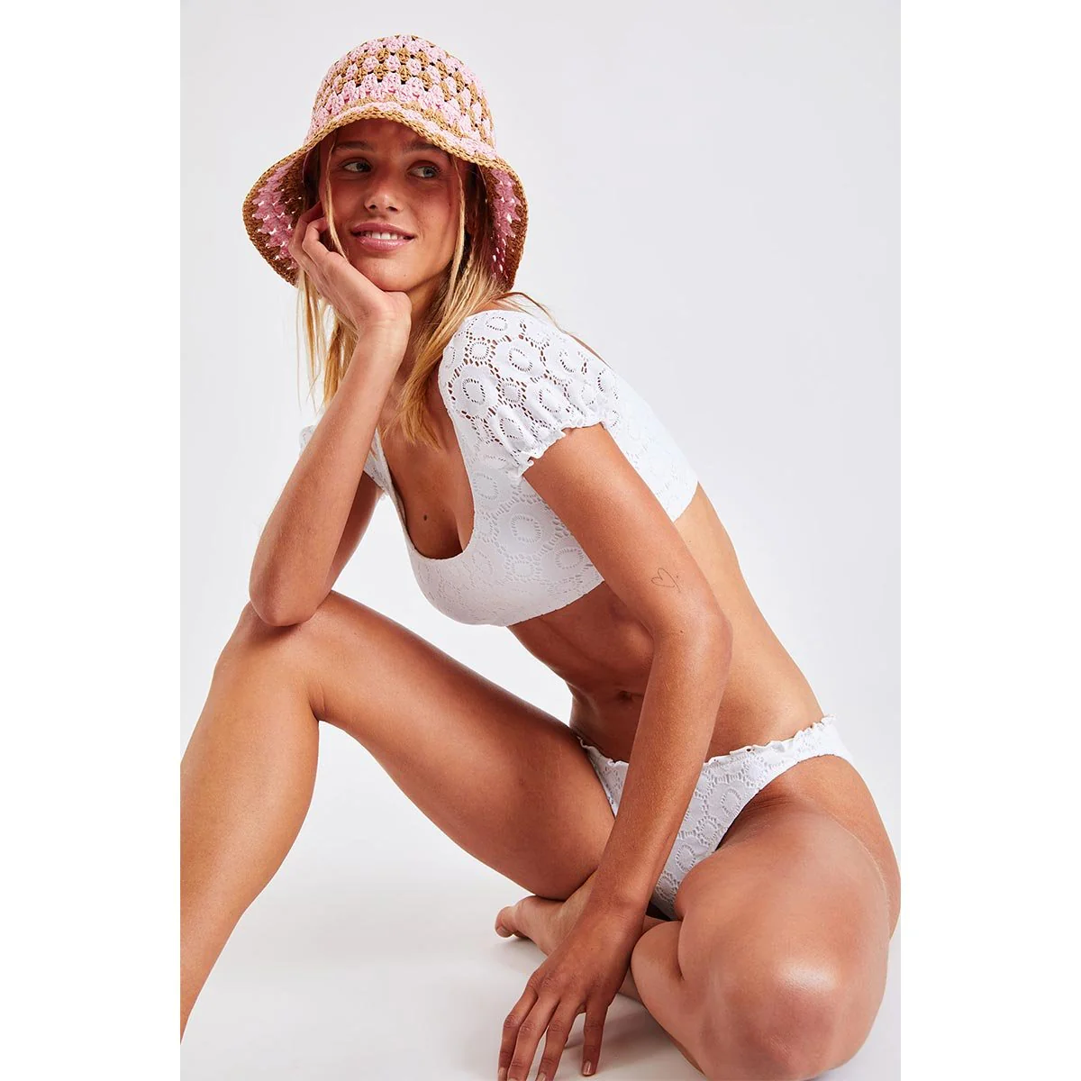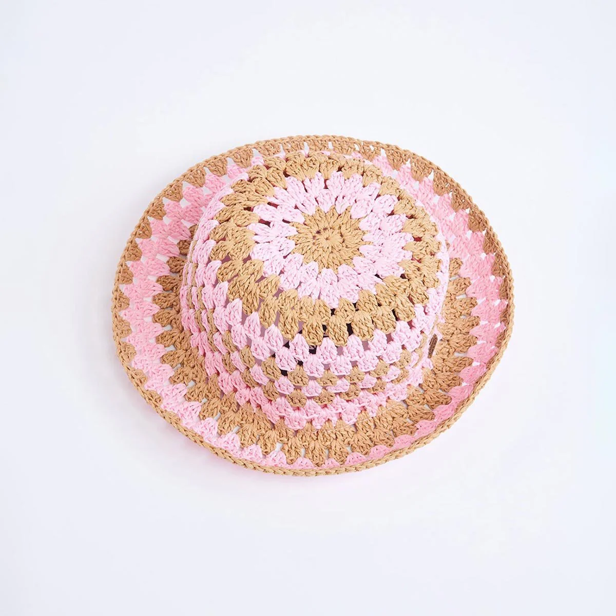 Cappello da pescatore all’uncinetto, colore arancione multicolore.