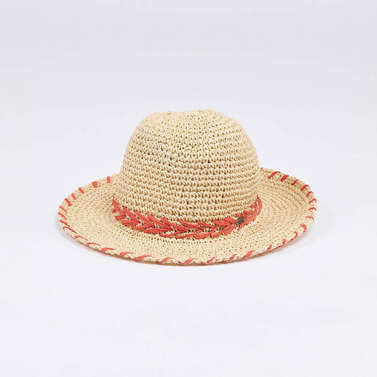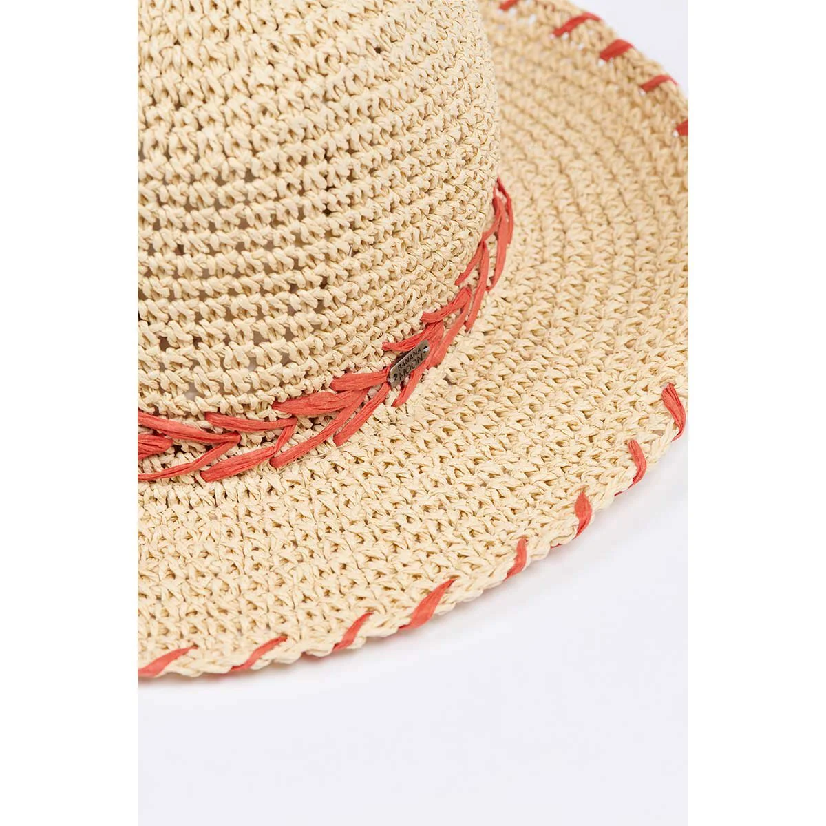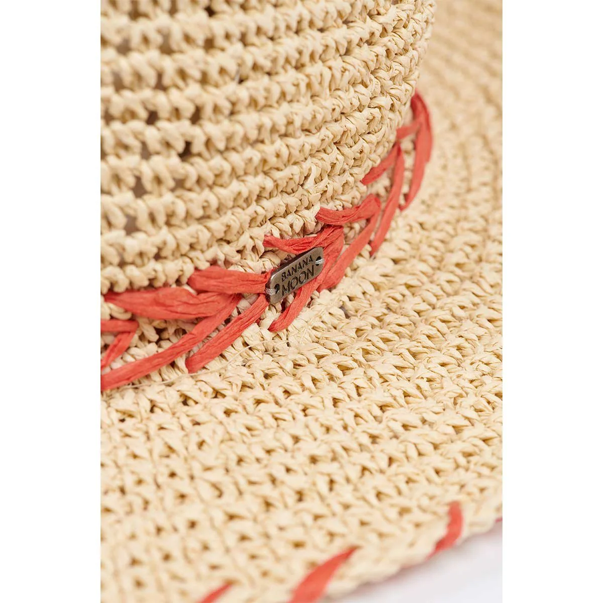 Cappello donna morbido intrecciato in cellulosa di colore beige naturale, rafia rosso.