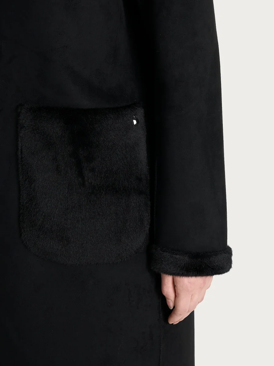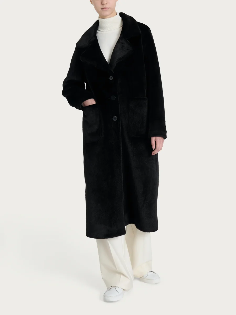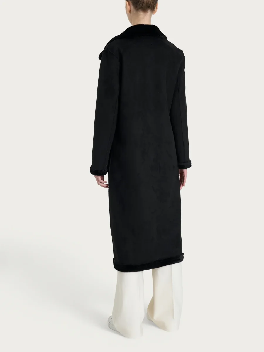 Cappotto lungo con revers double-face in Vegan Shearling – Nero
