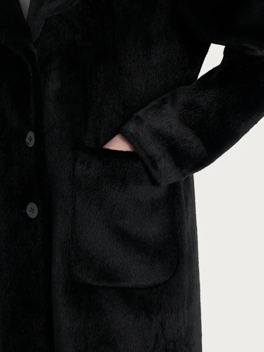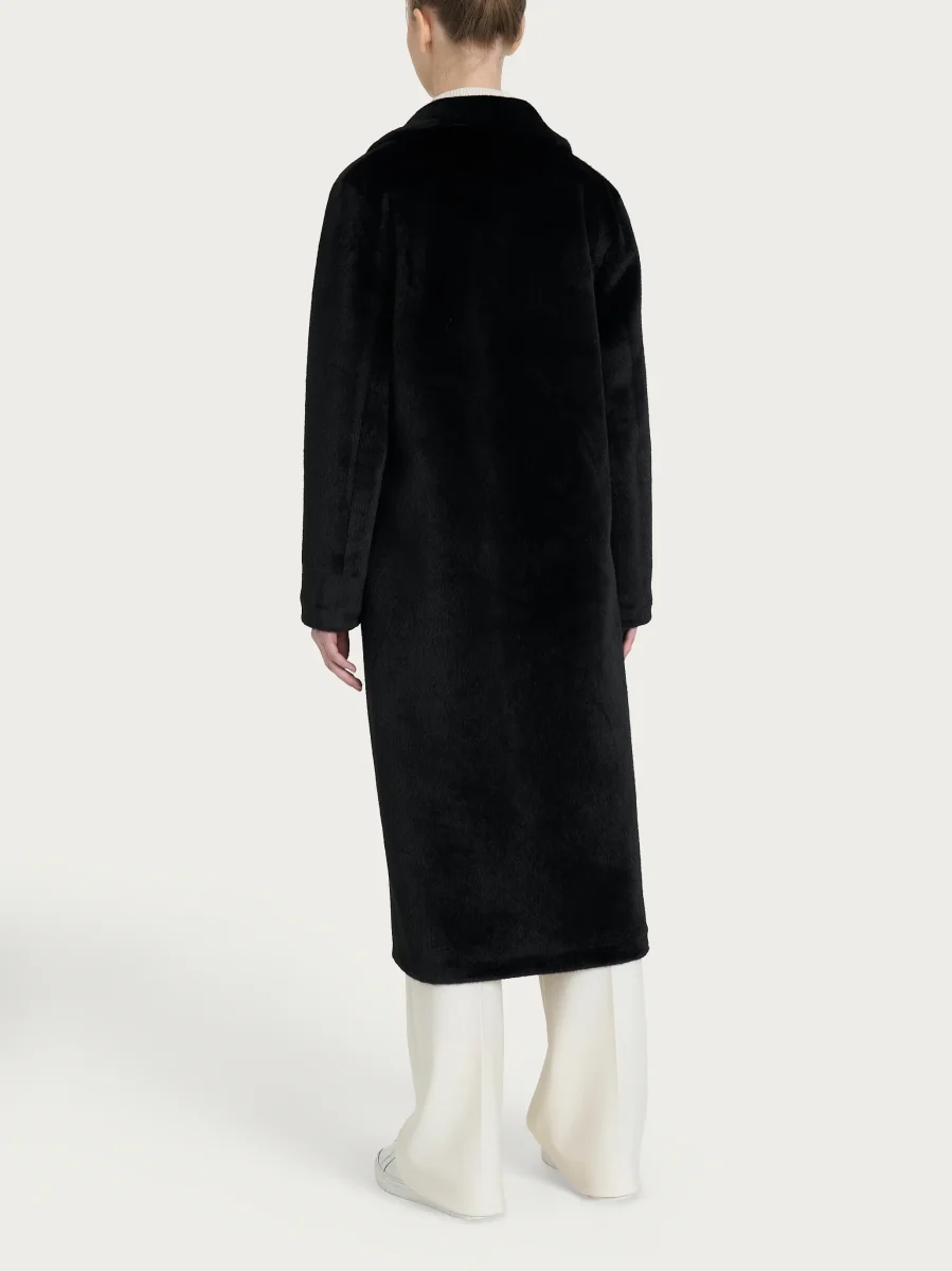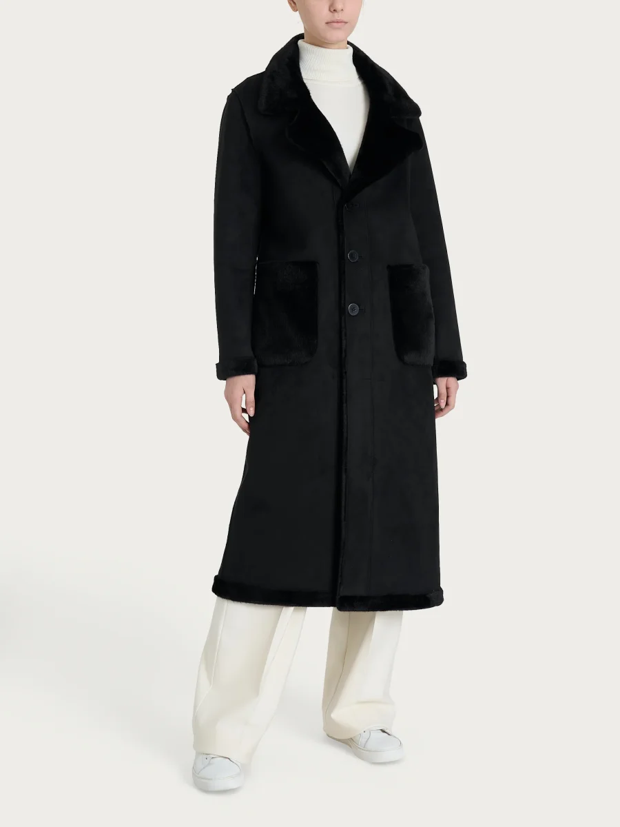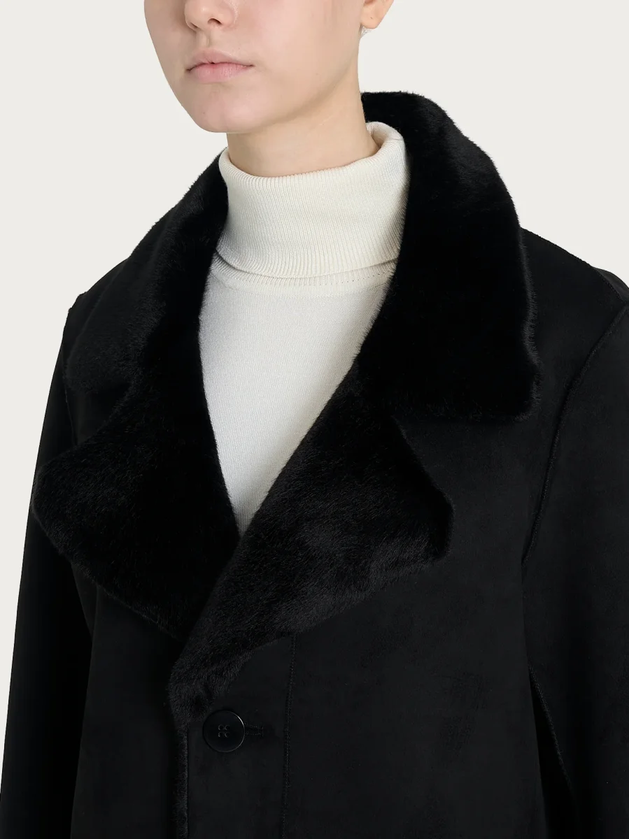 Cappotto lungo con revers double-face in Vegan Shearling – Nero