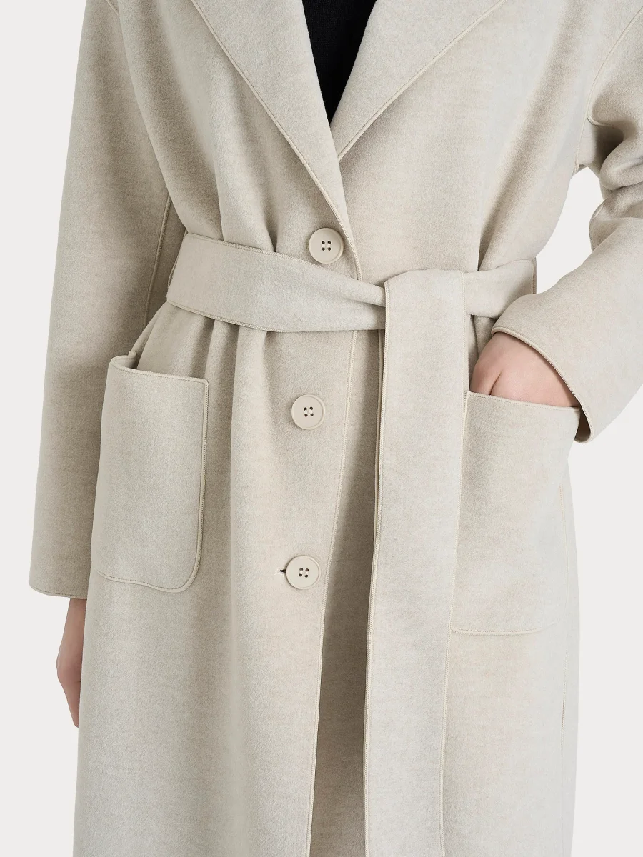 La cintura in tinta rende possibile la regolazione del capo con facilità, adattandolo alla propria silhouette e alle preferenze personali.